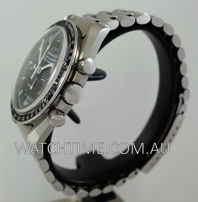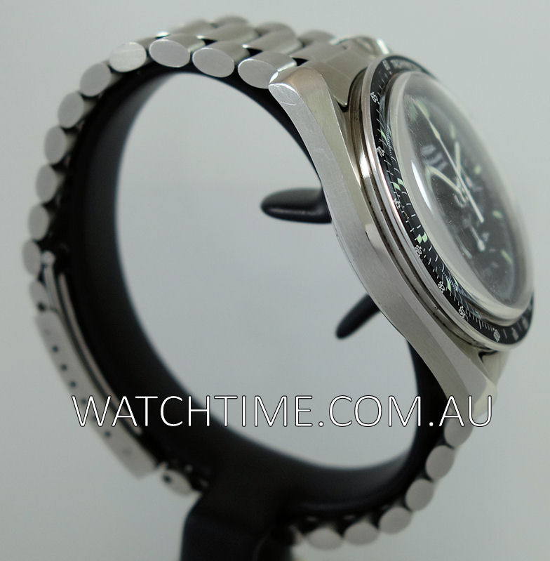 | Case | Stainless-steel case with NASA back, original crown and pushers. Tachymetre bezel and Hesalite crystal have some very fine marks. |
