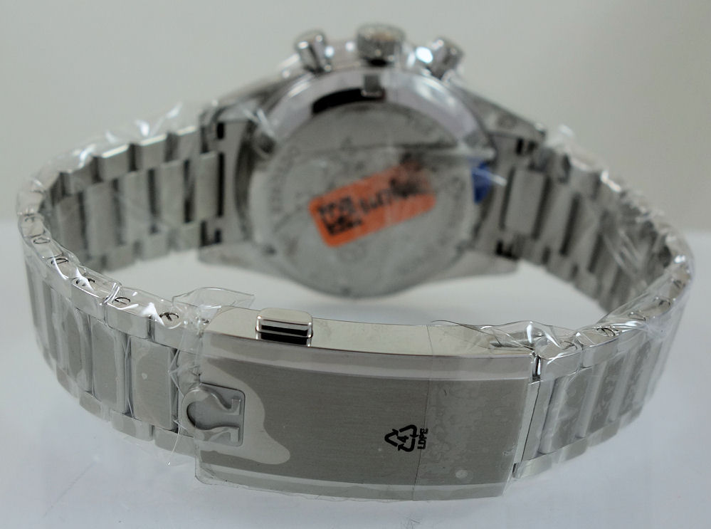 | Case | Polished & brushed stainless-steel with black Tachymetre bezel, domed Sapphire crystal and specially engraved case-back. |