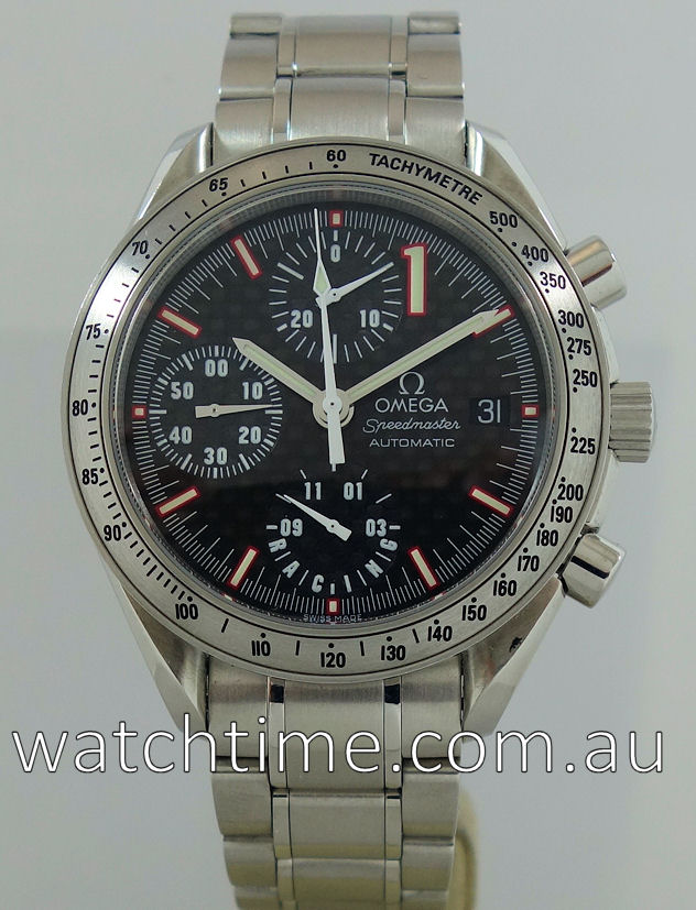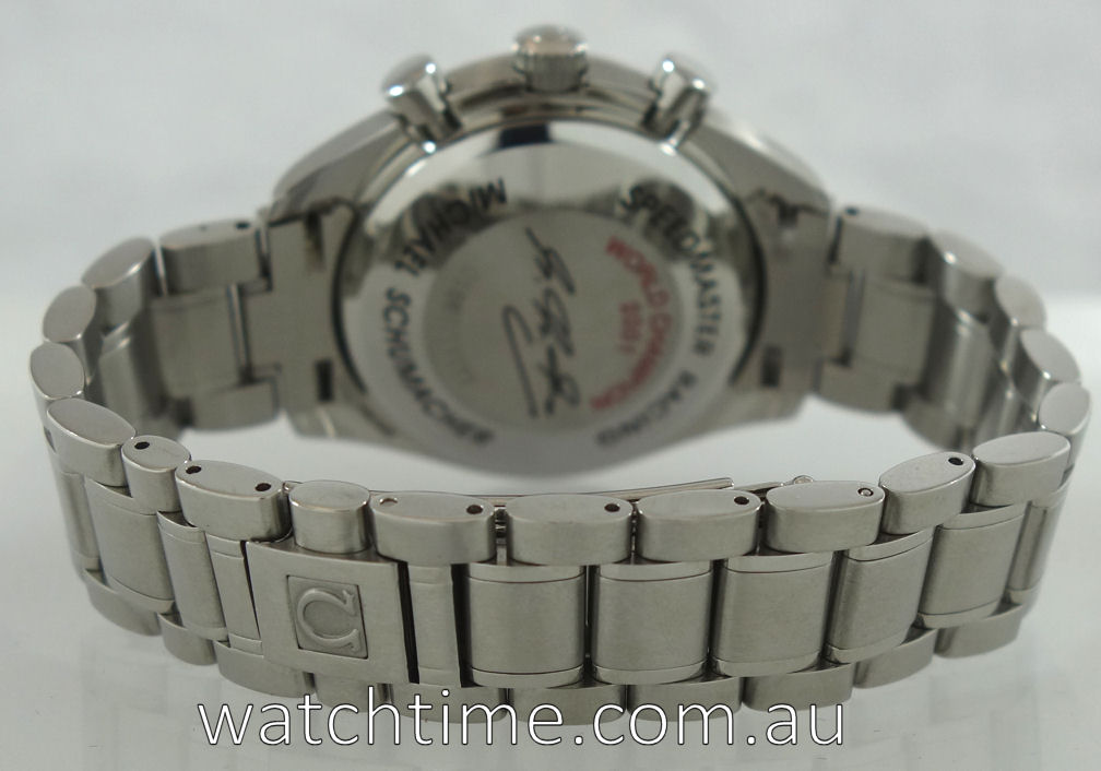 This limited edition Omega Sppedmaster “Racing” was produced for Michael Schumacher who is widely regarded as one of the greatest Formula One drivers ever, and regarded by some as the greatest of all time. Schumacher is the only driver in history to win seven Formula One World Championships, five of which he won consecutively (from 2000 to 2004). The most successful driver in the history of the sport, Schumacher holds the records for the most World Championship titles (7), the most Grand Prix wins (91), the most fastest laps (77) and the most races won in a single season (13), and according to the official Formula One website, Schumacher is “statistically the greatest driver the sport has ever seen”.
