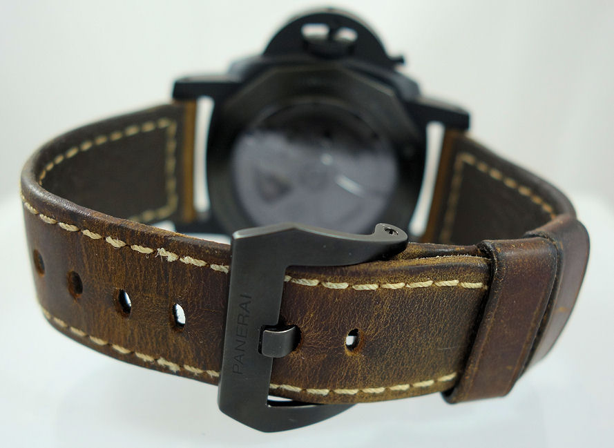 Beige Calf Assolutamente with black pin buckle by Panerai. Additional black Rubber strap.