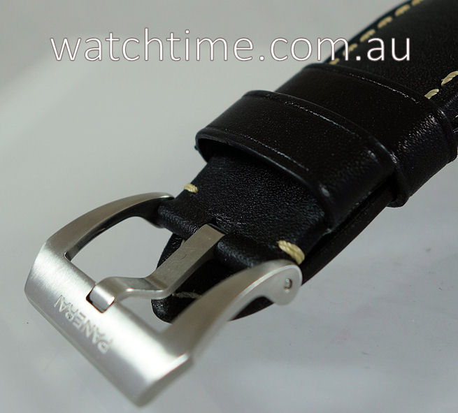 | Band | Black Calf Leather with contrasting stitch, steel pin buckle. Additional black Rubber. |