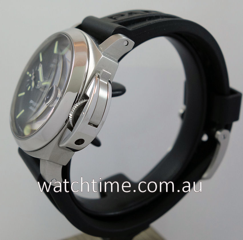 | Case | Polished Luminor case with crown protector and screw-back. Sapphire crystal glass with cyclops lens under the glass. |