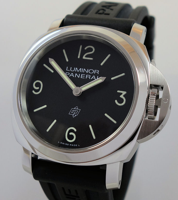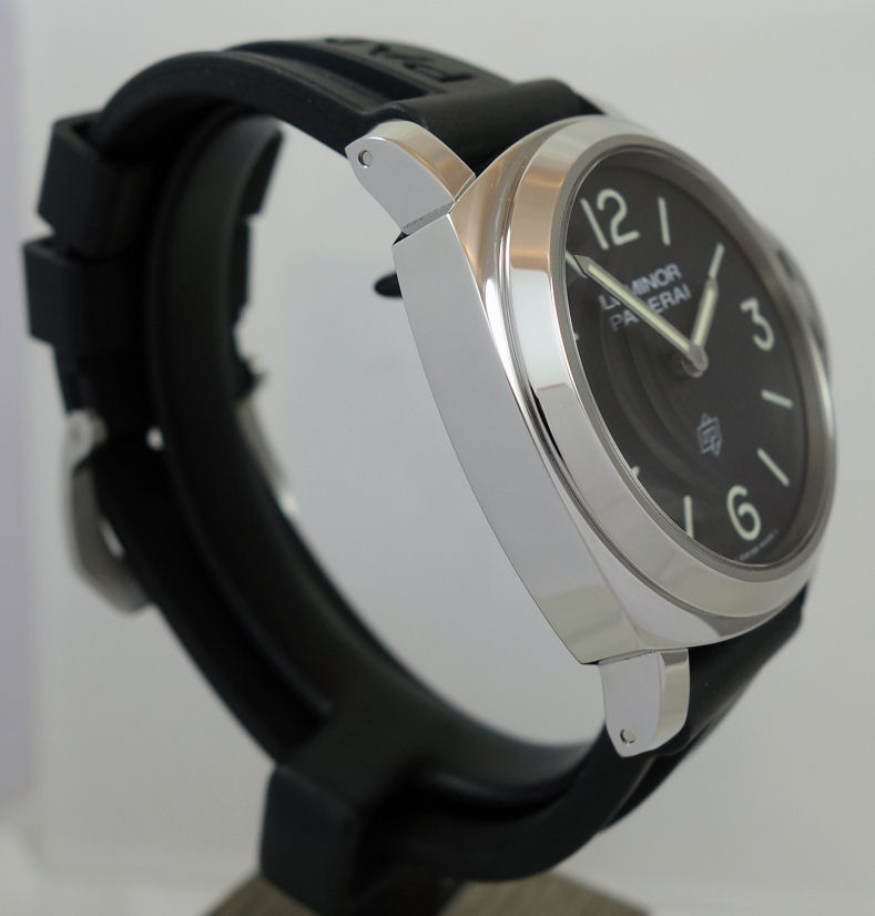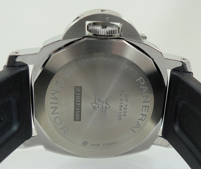 | Case | Polished stainless-steel Luminor case with solid case-back. Sapphire crystal glass and device to protect the crown. |