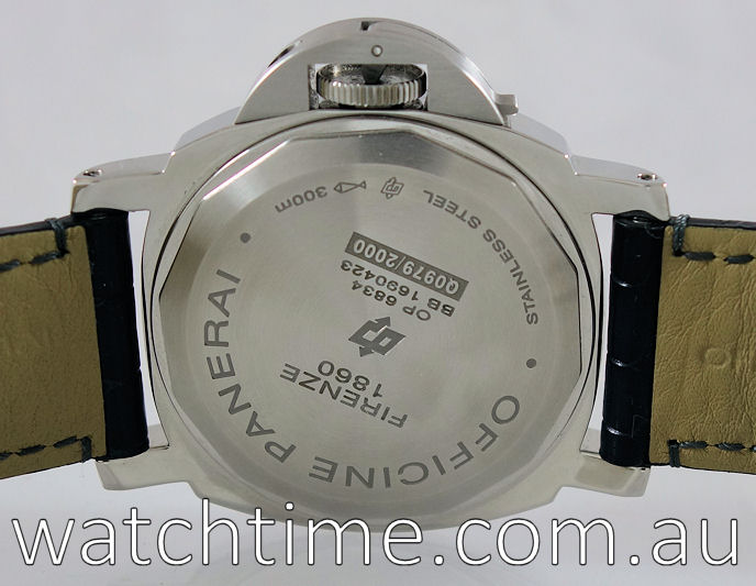 | Dial | Black dial luminous hands, hour indices and Arabic numbers. Subsidiary seconds at 9 h pos and OP Logo at 6 h pos. |