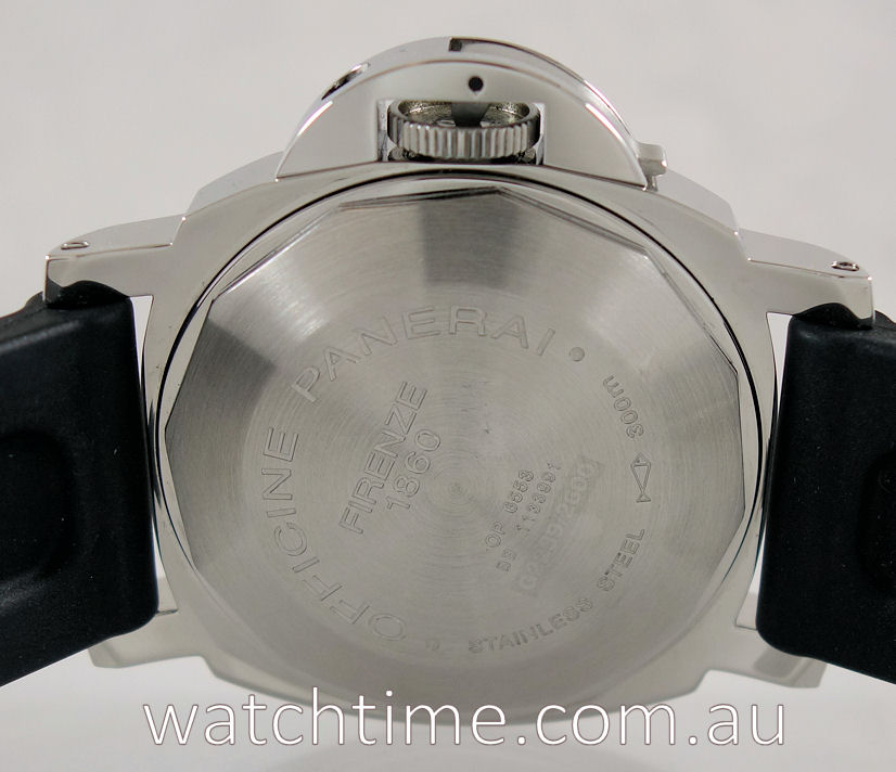 | Case | Brushed stainless-steel with polished bezel, Panerai crown-locking system, solid case-back and Sapphire crystal glass. |
