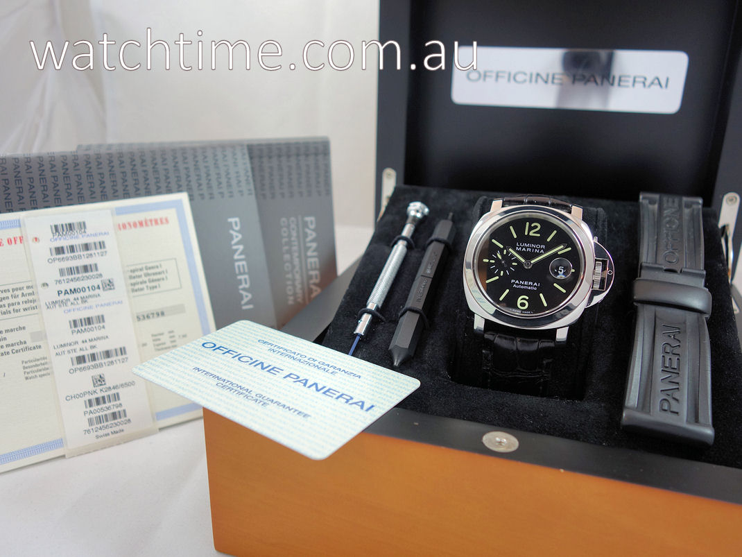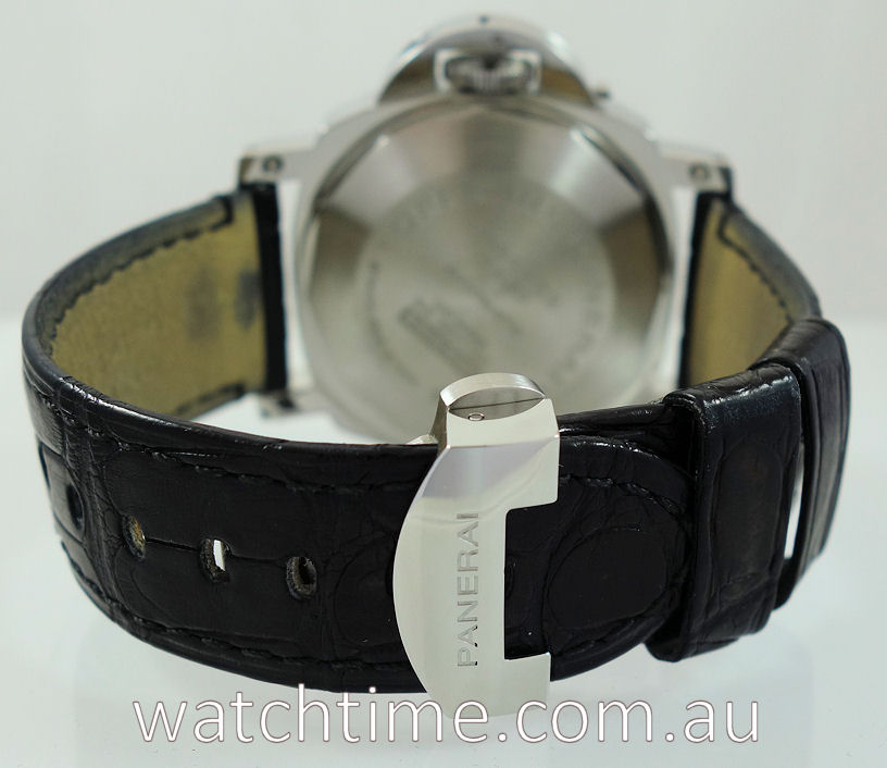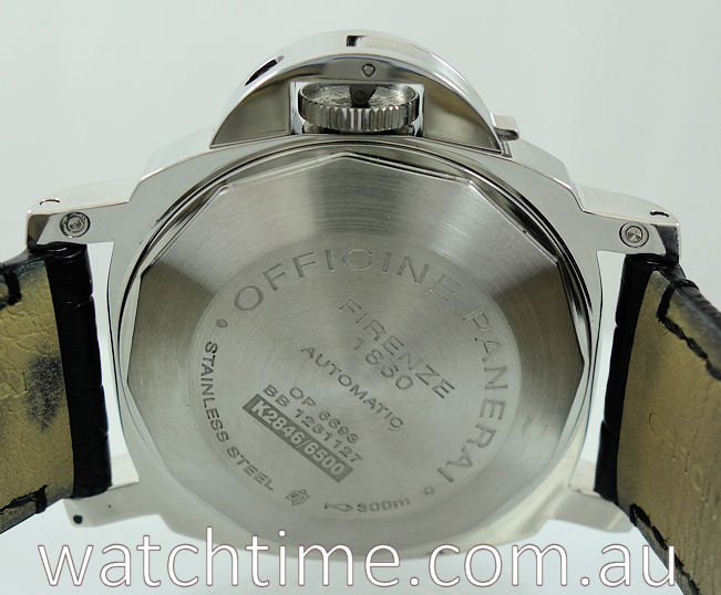 | Case | Brushed stainless-steel with polished bezel, Panerai crown-locking system, solid case-back and Sapphire crystal glass. |