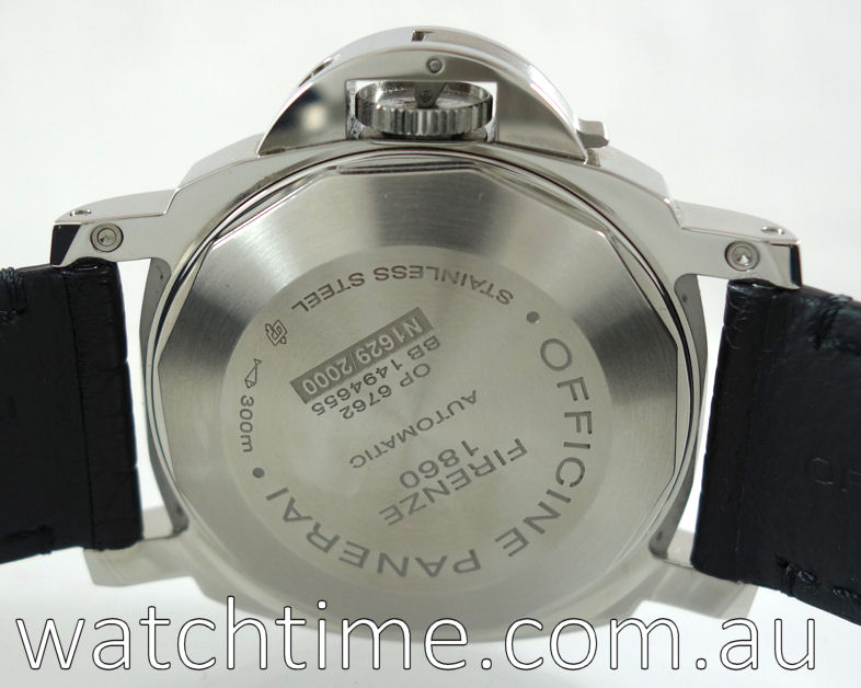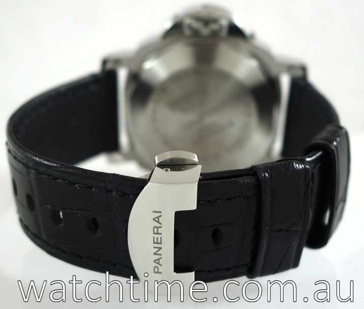 | Case | Stainless-steel Luminor case with polished bezel, crown locking device and solid case-back. Sapphire crystal glass. Quick release system for strap change. |