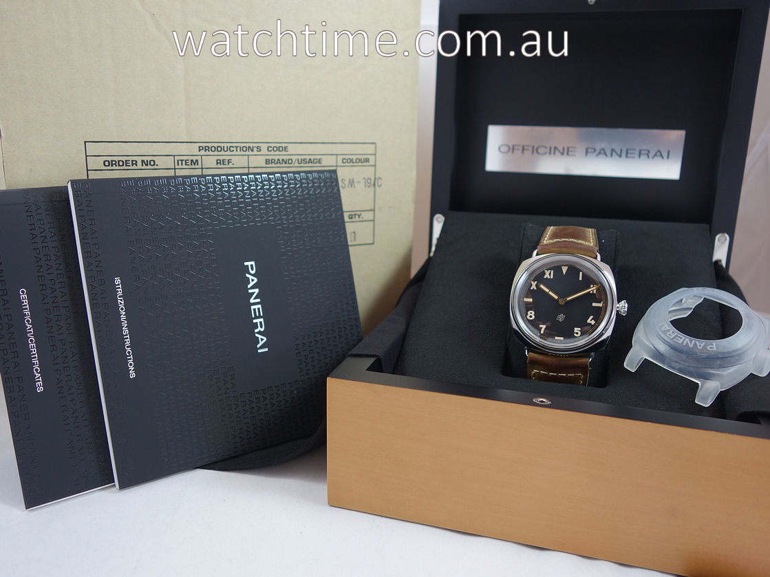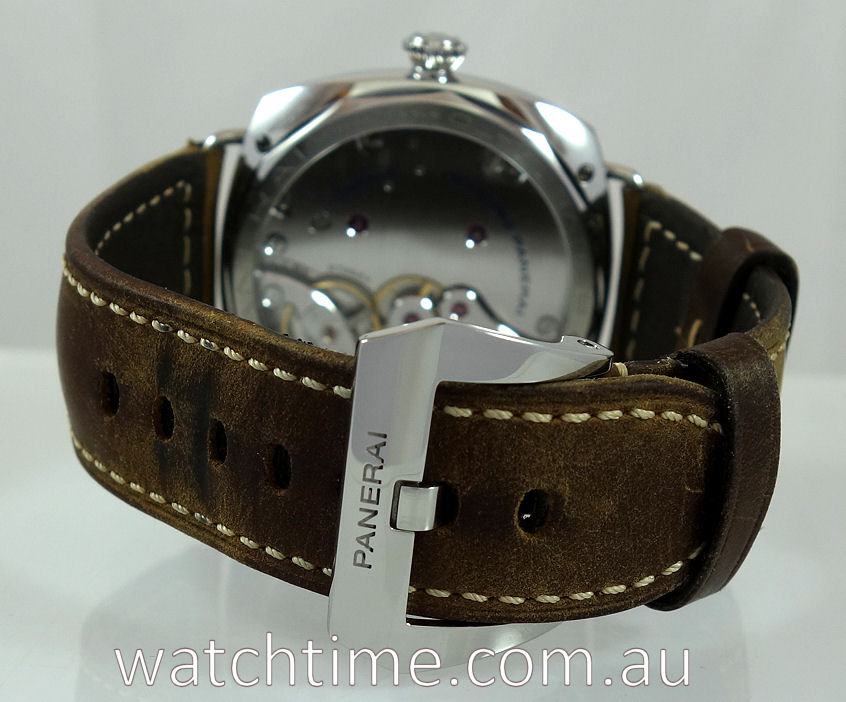 | Case | Polished Stainless-steel Radiomir case with wire lugs. Sapphire top and back. |