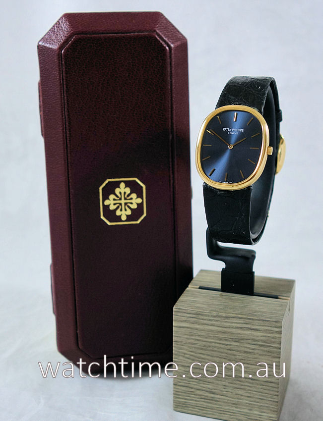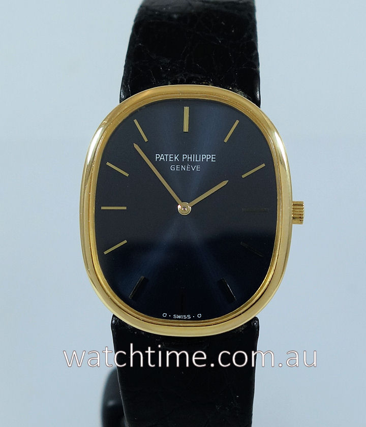 A very fine and rare manual-winding 18K yellow gold wristwatch by PATEK PHILIPPE. The “Golden Ellipse” first appeared in 1968 and the shape and design is still the benchmark for simple elegance.