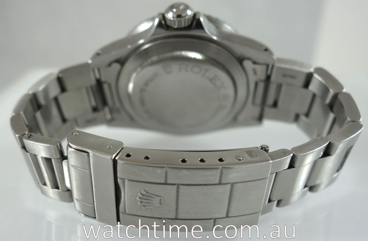 | Case | Stainless-steel Oyster case with bi-directional turning diver’s bezel and screw-in crown. Domed plexiglas. |