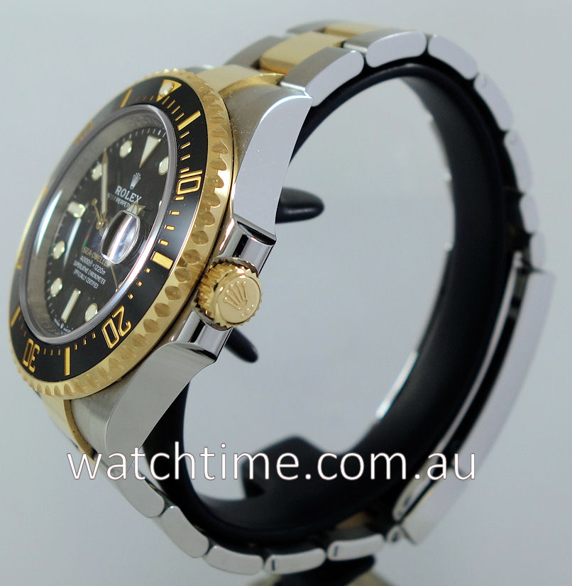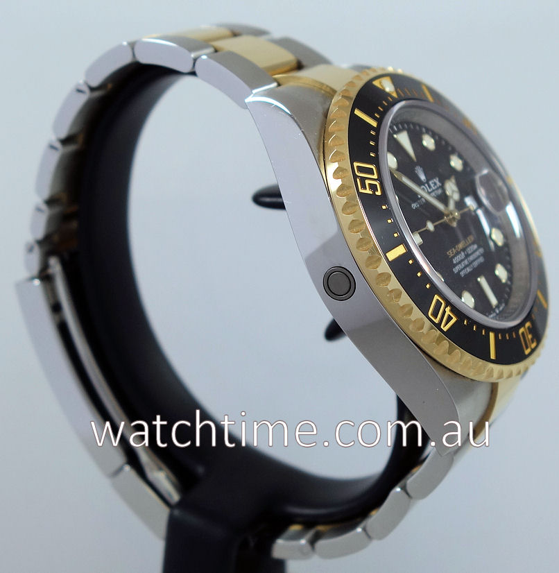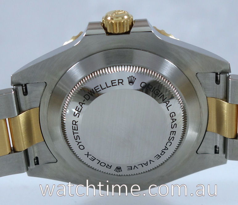 | Case | Stainless-steel Oyster case with screw-down crown, helium valve and Sapphire crystal glass. 18k Yellow-Gold unidirectional rotatable bezel; 60-minute graduated, scratch-resistant Cerachrom insert in c |