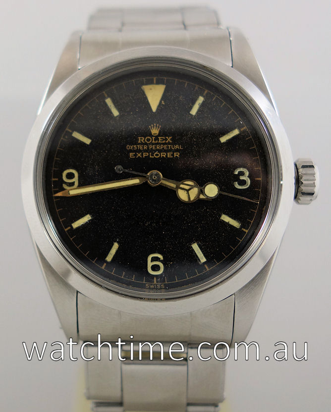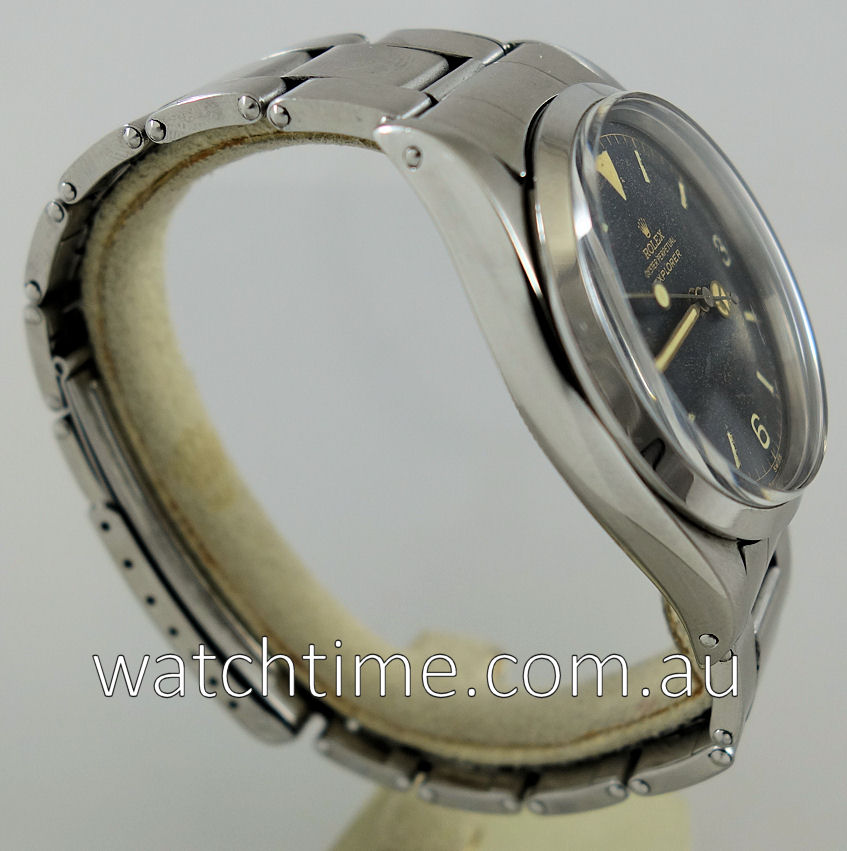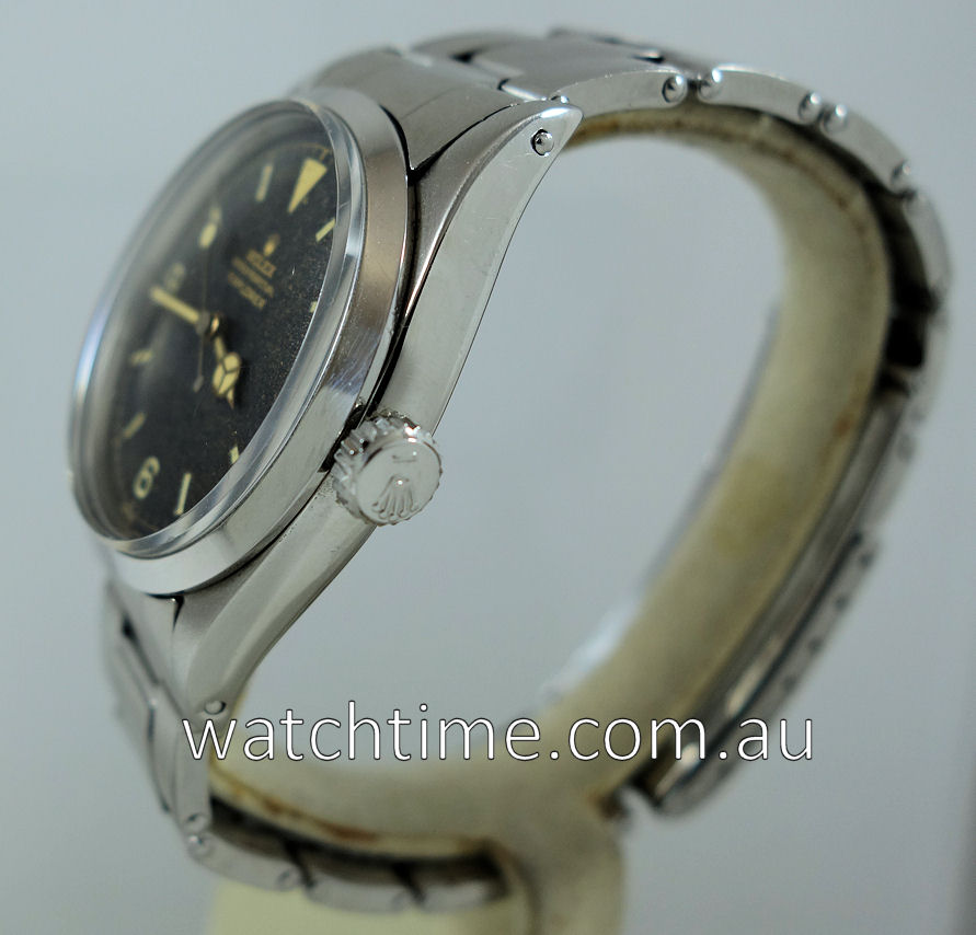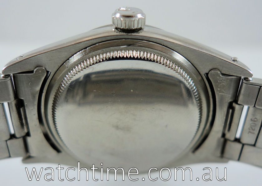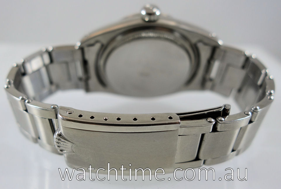 | Case | Stainless steel Oyster case with domed plexiglas, fixed bezel and screw-down crown. |