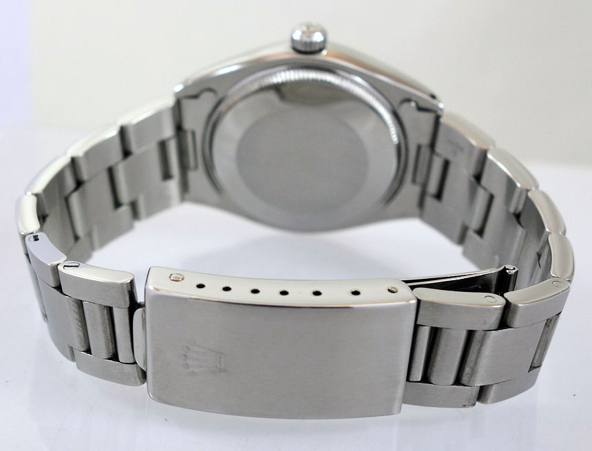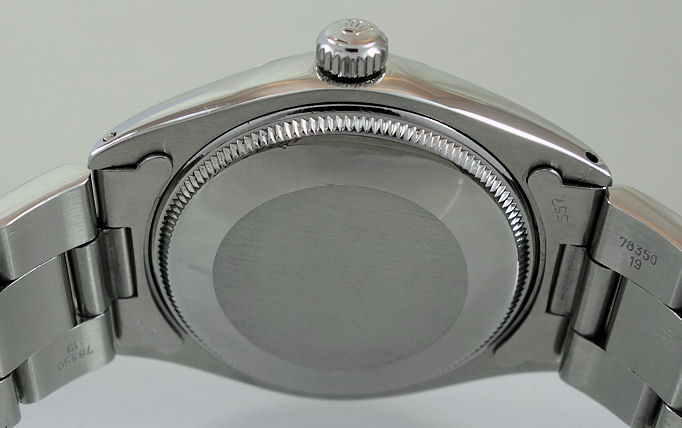 Stainless-steel Oyster case with screw-down crown and plexiglas.