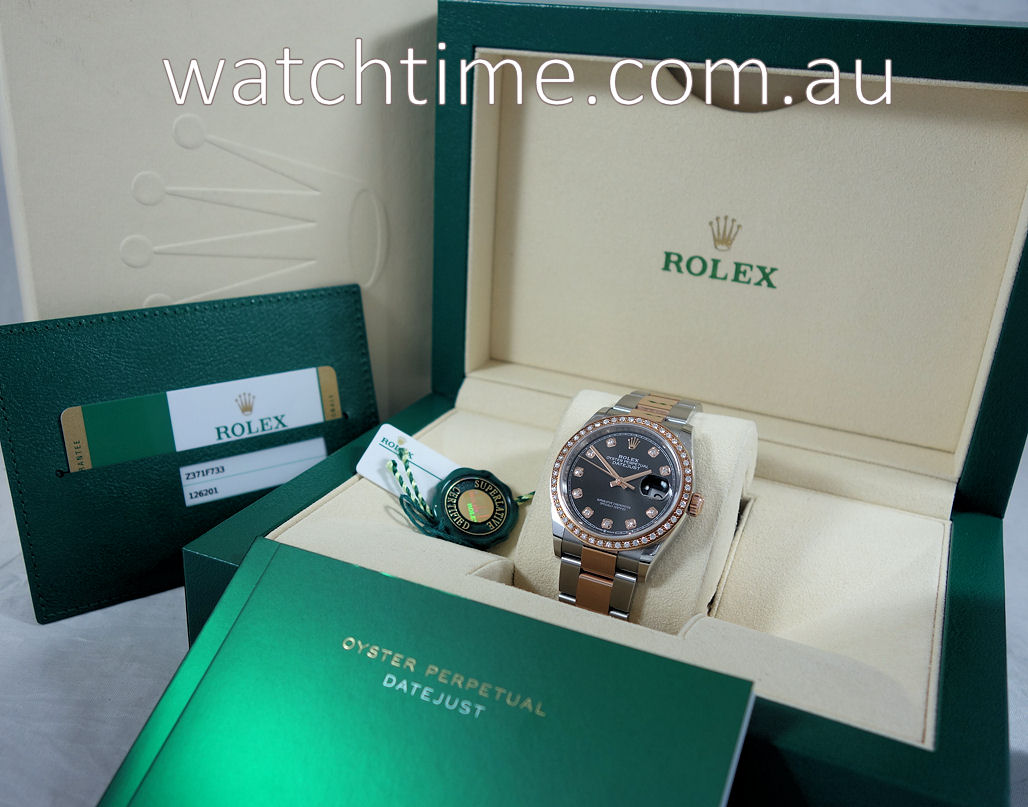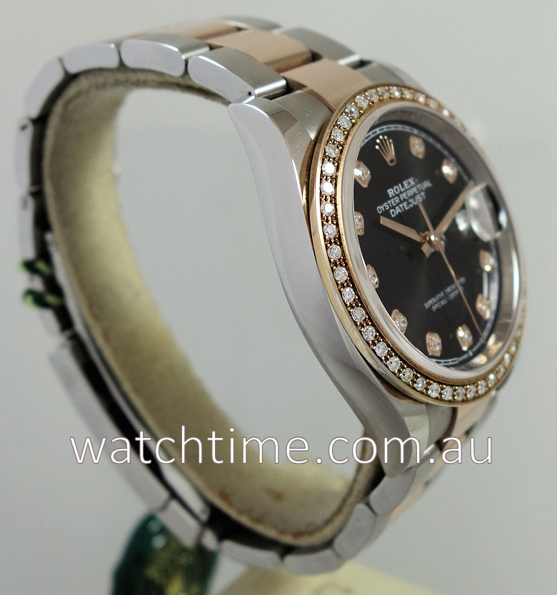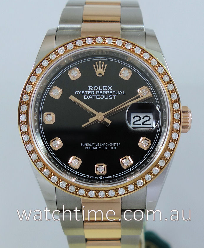 Rolex Datejust 18k Everose & Steel 126201 Black Diamond-dial