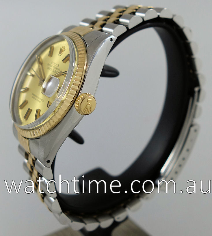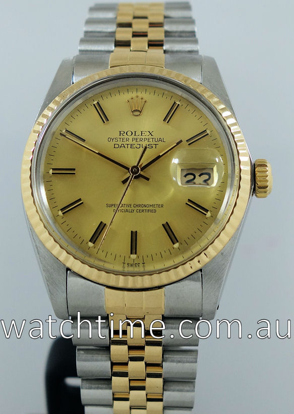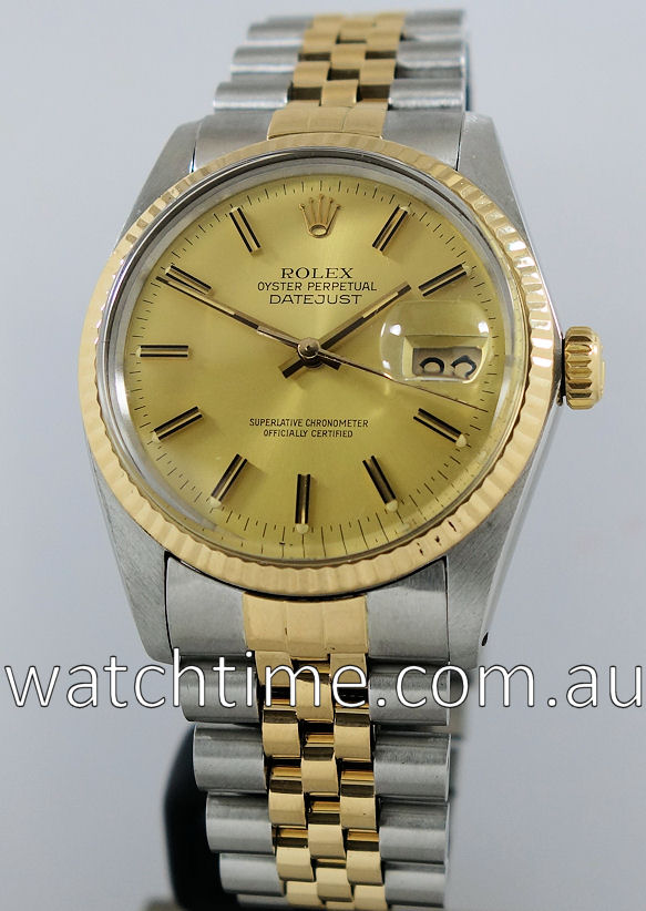 | Dial | Champagne dial with applied hour indices and matching hands. Date window at 3 h pos. |