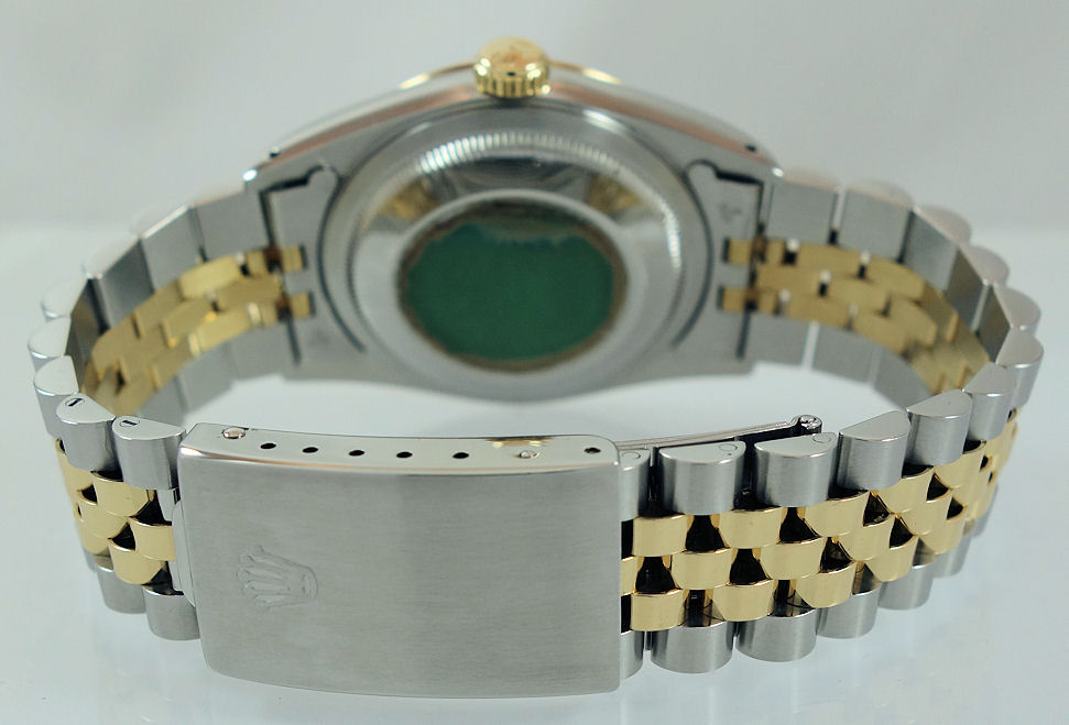 | Band | 18k Yellow-Gold and Stainless-Steel Jubilee bracelet and folding clasp by Rolex. Total amount of links, as per photograph. |