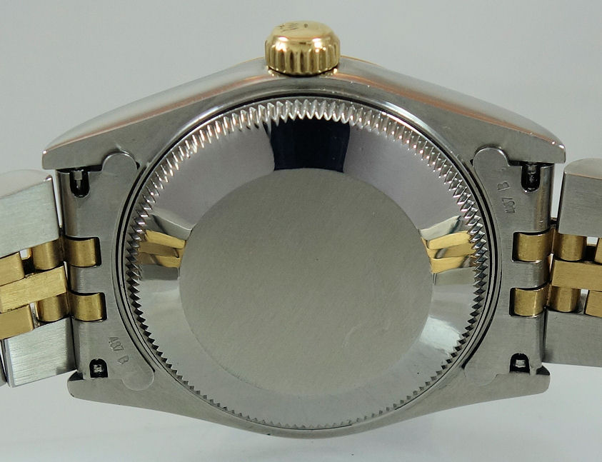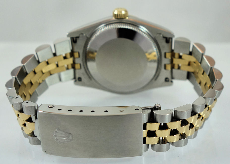 | Band | 18k Yellow-Gold and Stainless-Steel Jubilee bracelet and folding clasp by Rolex. Total amount of links, as per photograph. |