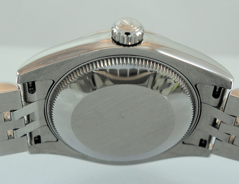 | Case | Stainless-Steel Oyster case with screw-down crown, White-Gold fluted bezel and sapphire crystal glass. |