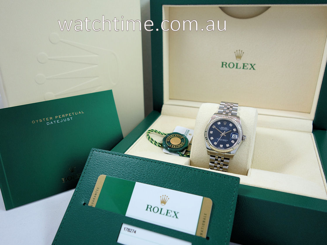Rolex Datejust 31 Steel, Blue Diamond dial 178274 BOX & CARD JAN 2017