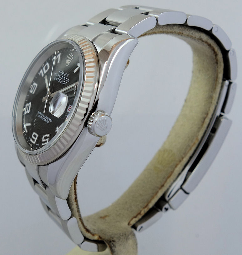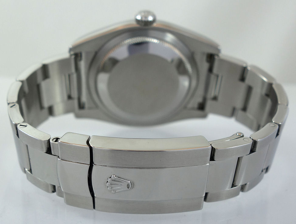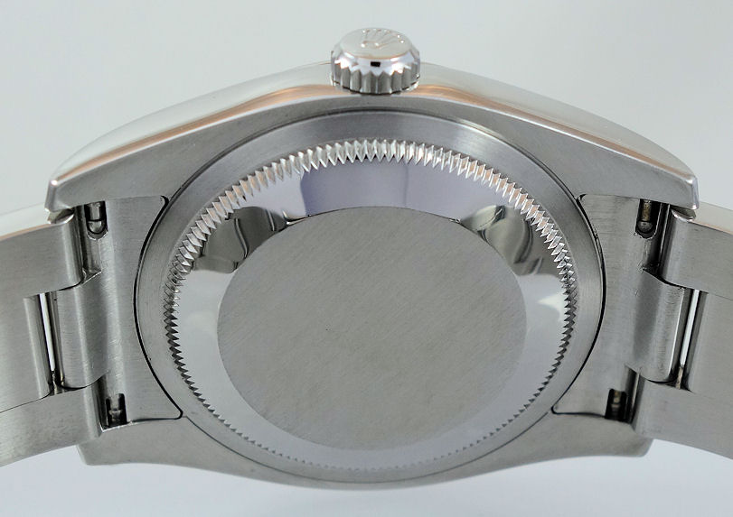 | Case | Stainless-Steel Oyster case with screw-down crown and 18k White-Gold fluted bezel. Sapphire crystal glass. |