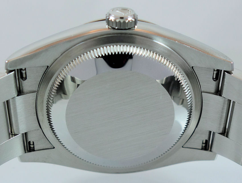 Stainless-Steel Oyster case with screw-down crown and 18k White-Gold fluted bezel. Sapphire crystal glass.