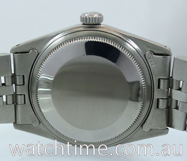 | Case | Stainless-steel Oyster case with screw-down crown, plexiglass and 18k White-Gold fluted bezel. |