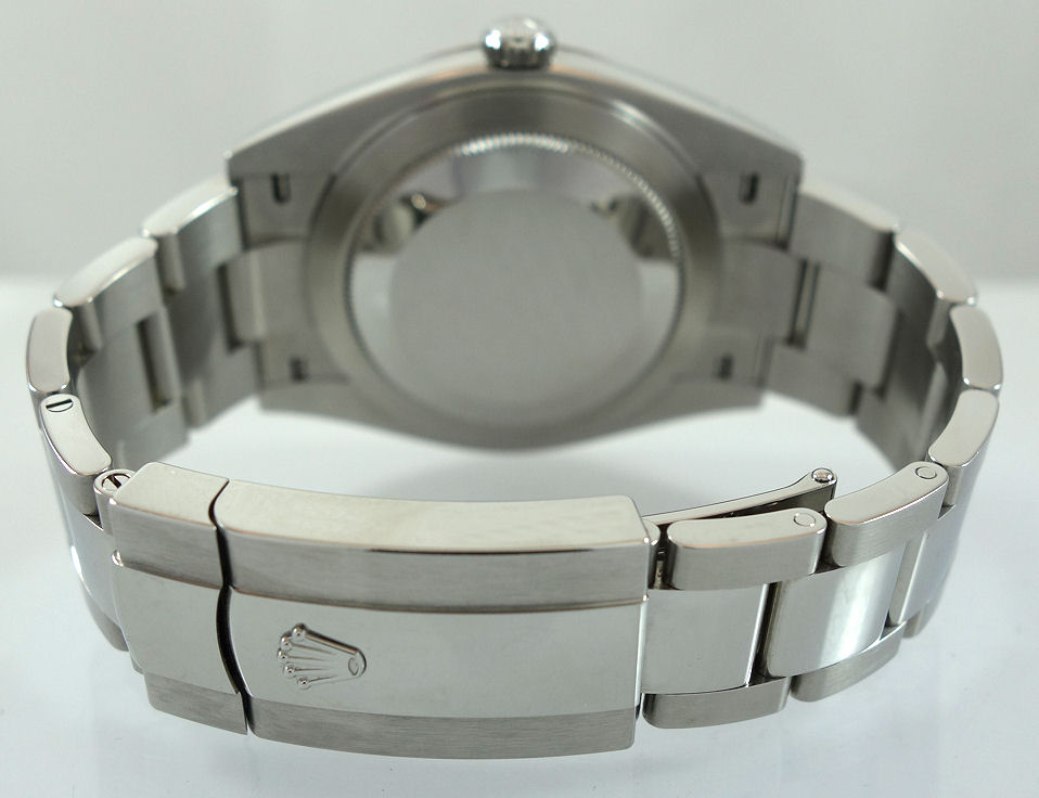 | Case | Stainless-steel Oyster case with 18k White-Gold fluted bezel. Screw-down crown and Sapphire crystal glass. |