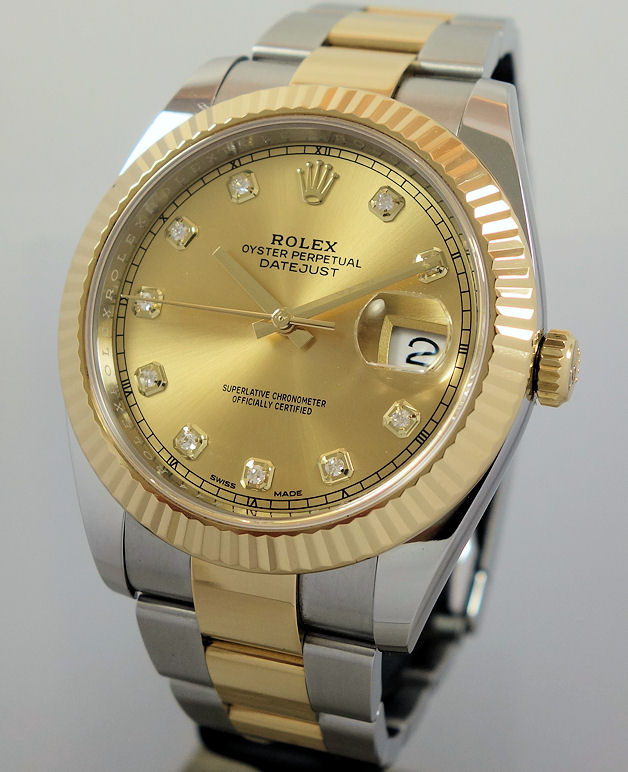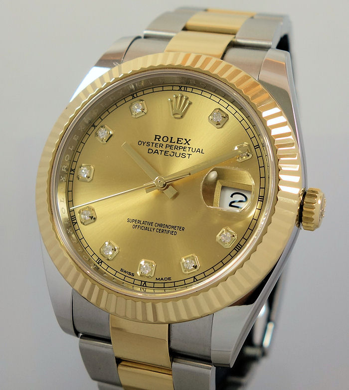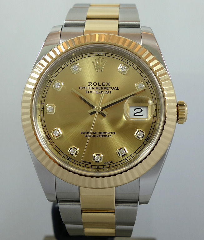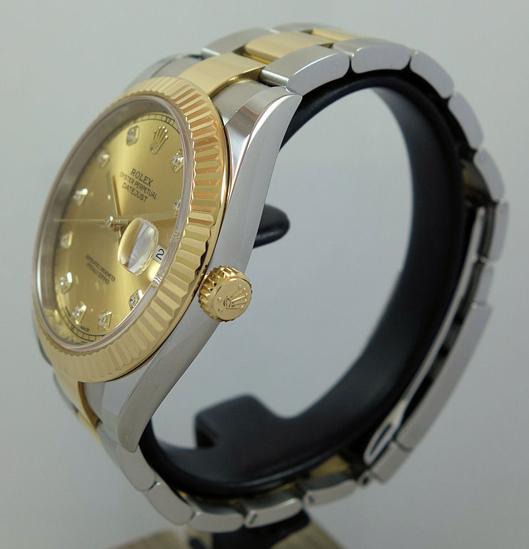 | Dial | Champagne Diamond-dial with gold hands and date at 3 o’clock. |