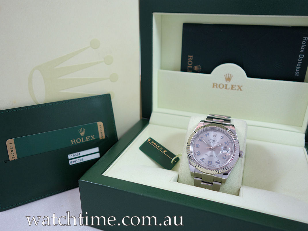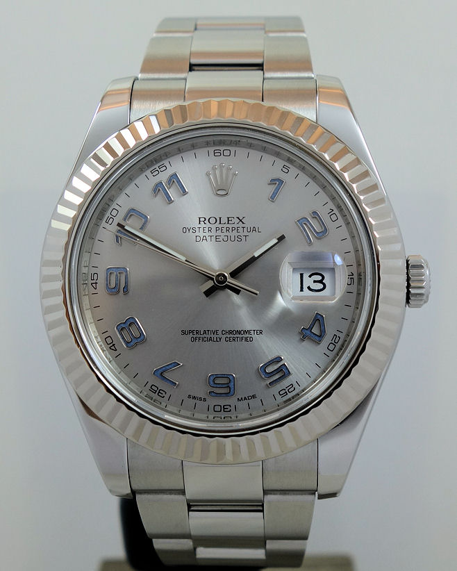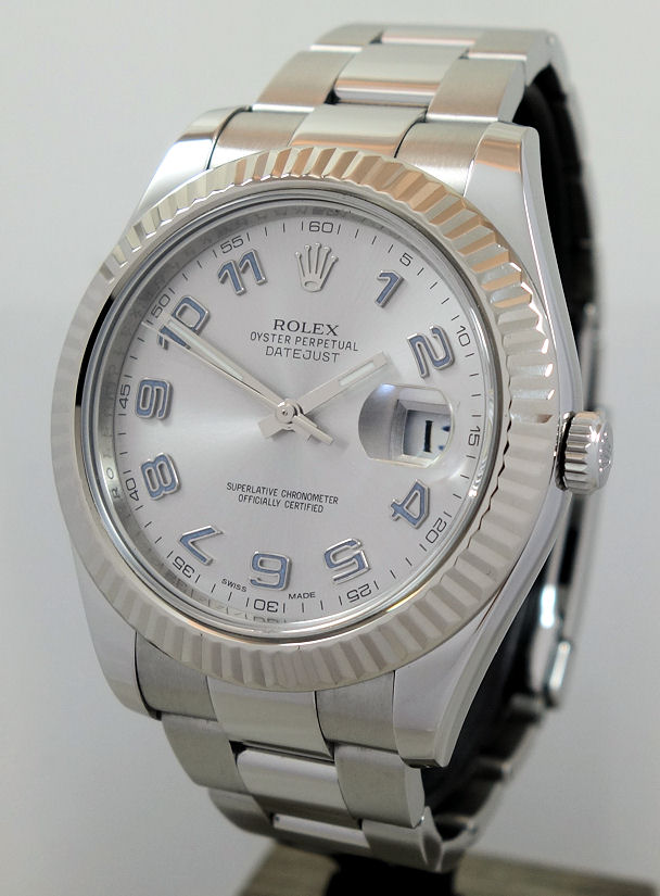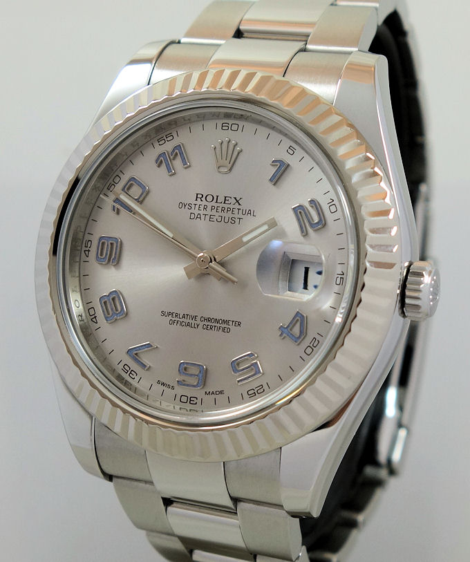Rolex Datejust II 116334 Rhodium Arabic dial, White-Gold bezel Box & Card