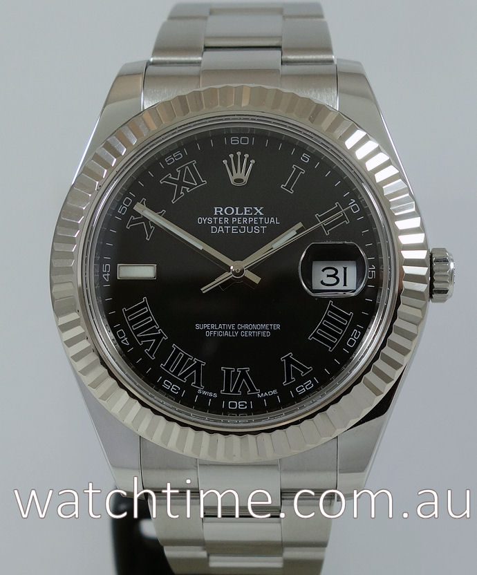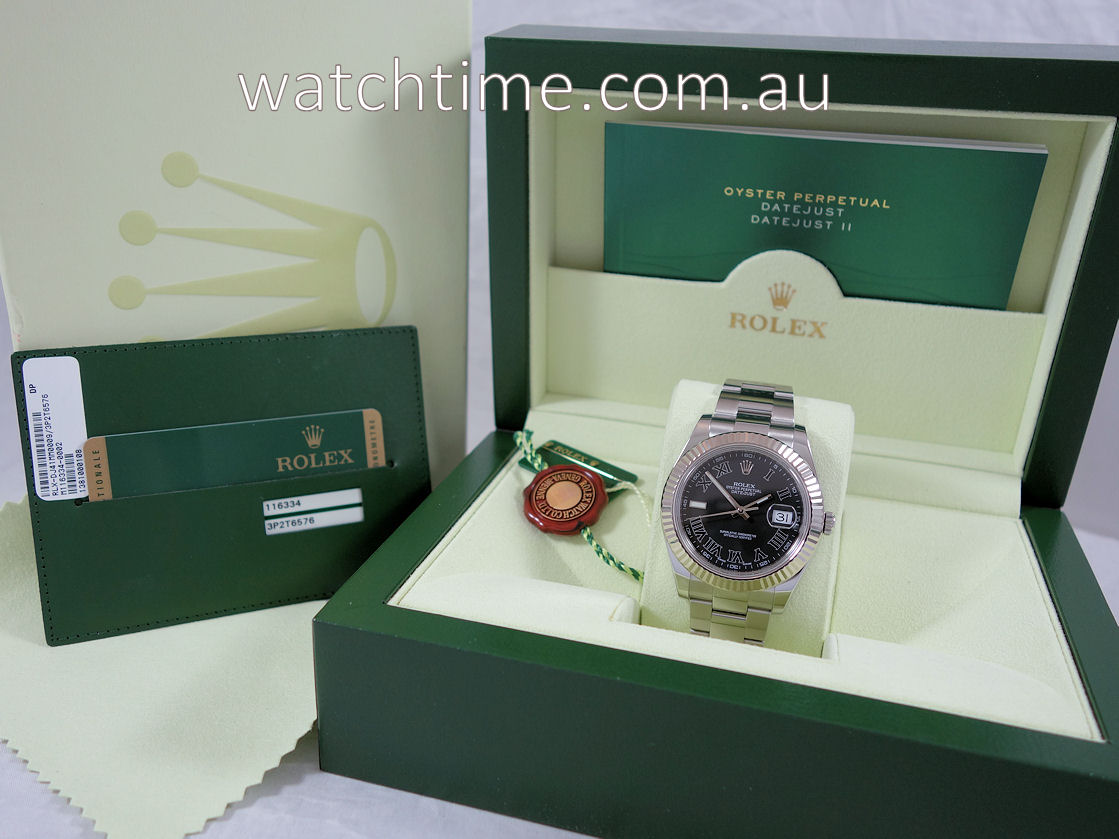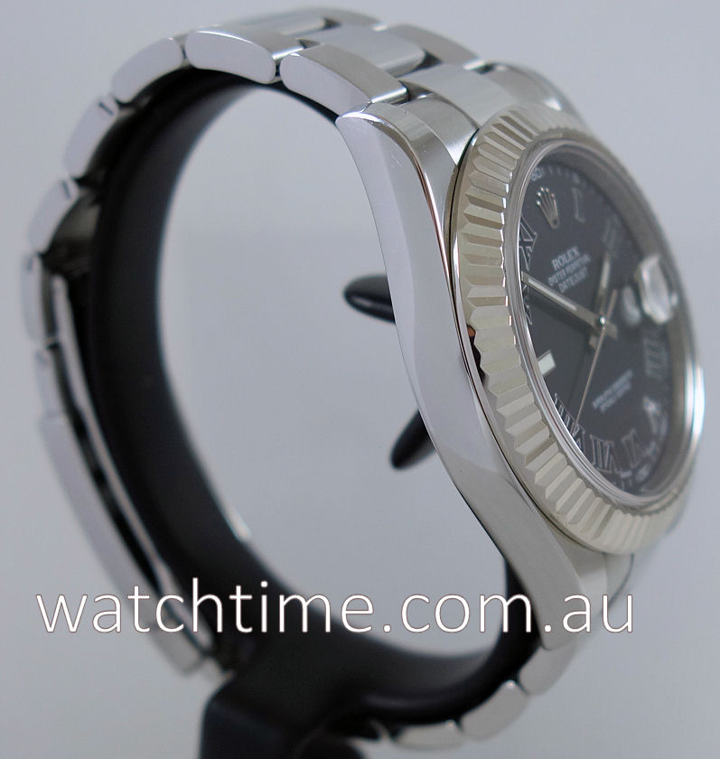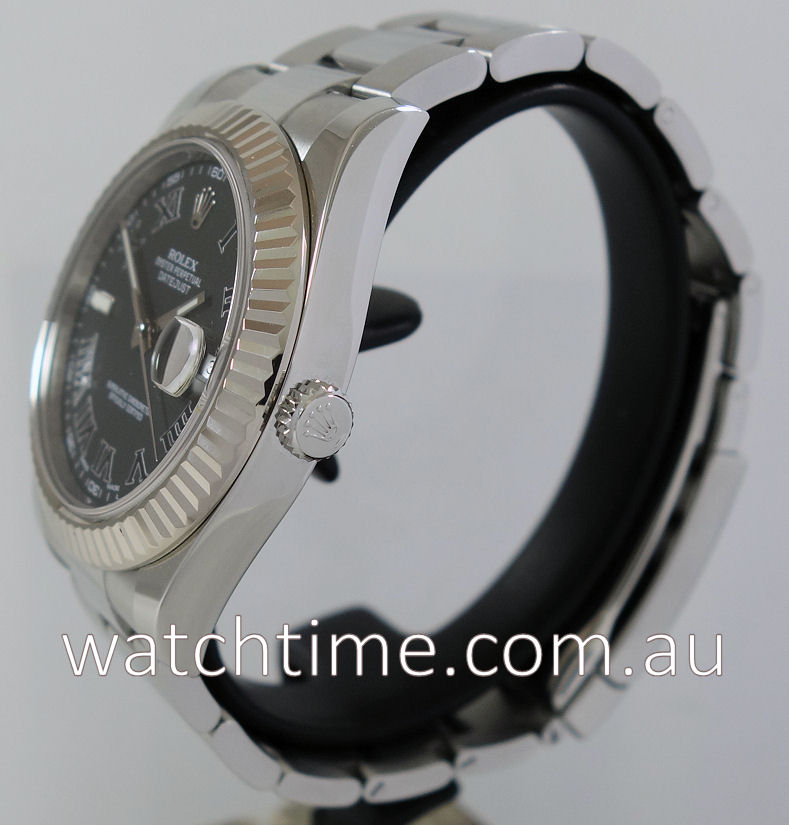 Rolex Datejust II Black Roman dial, White-Gold bezel 116334