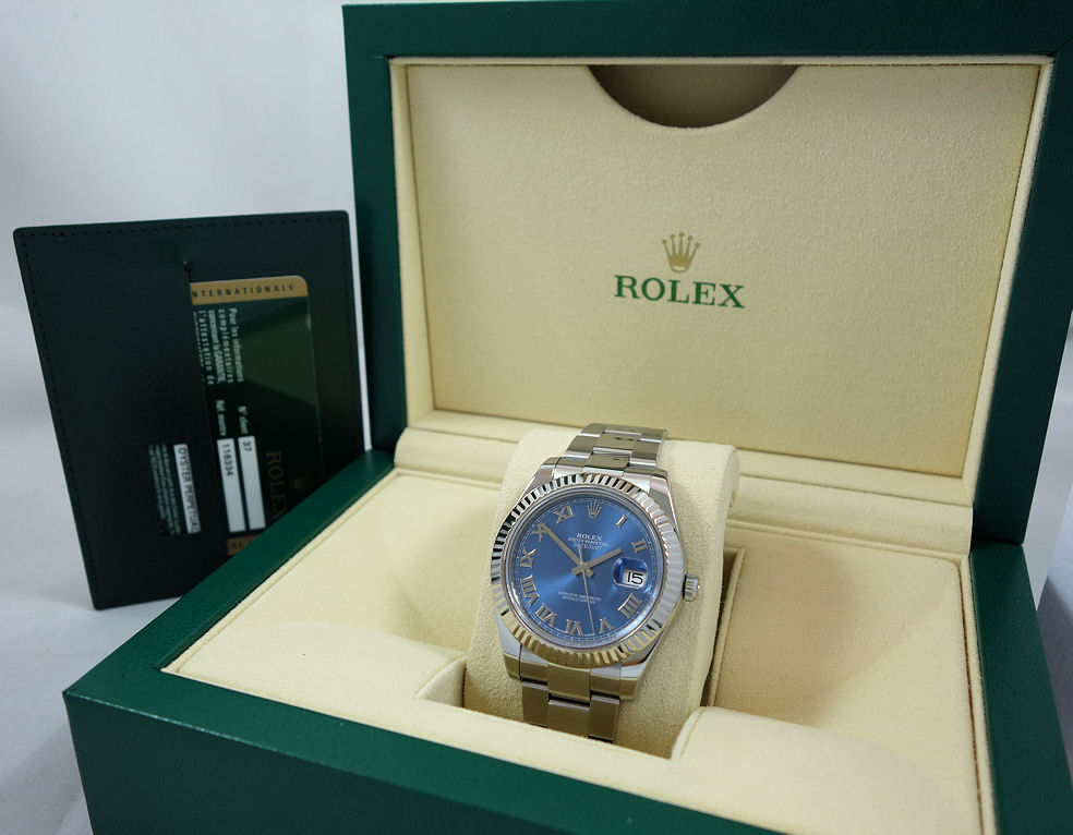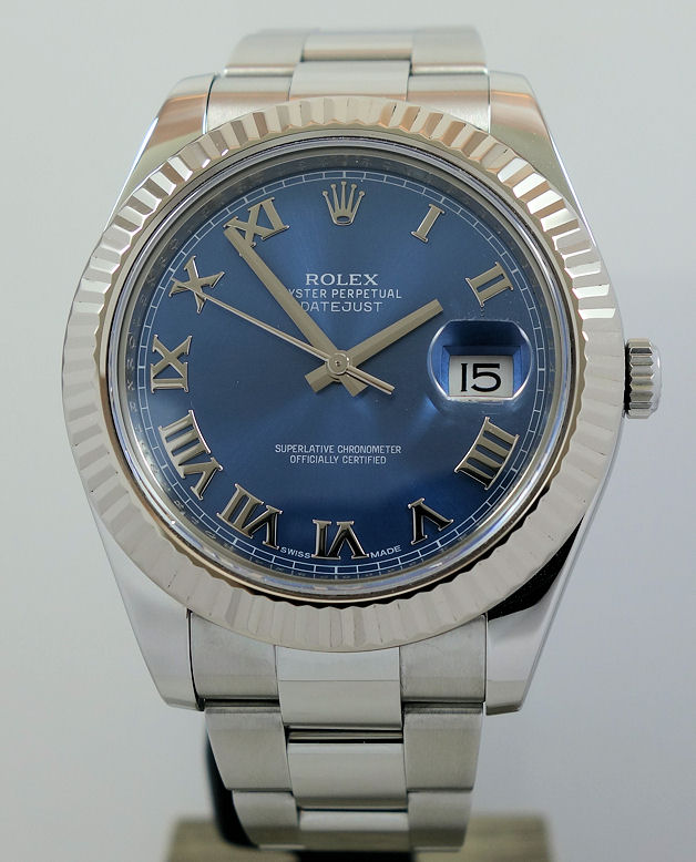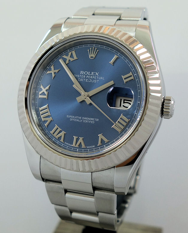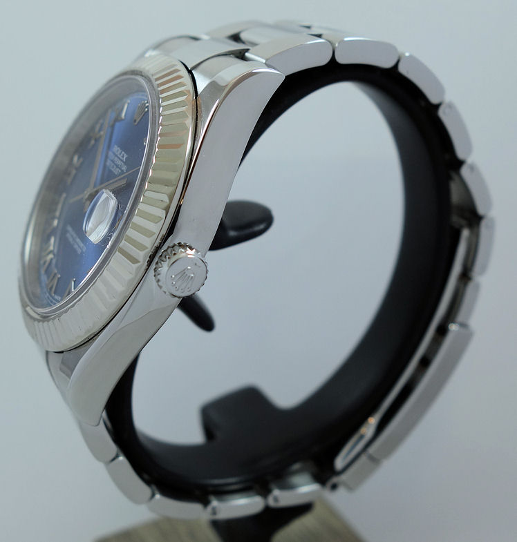Rolex Datejust II Blue Roman dial, White-Gold bezel 116334 Box & Card