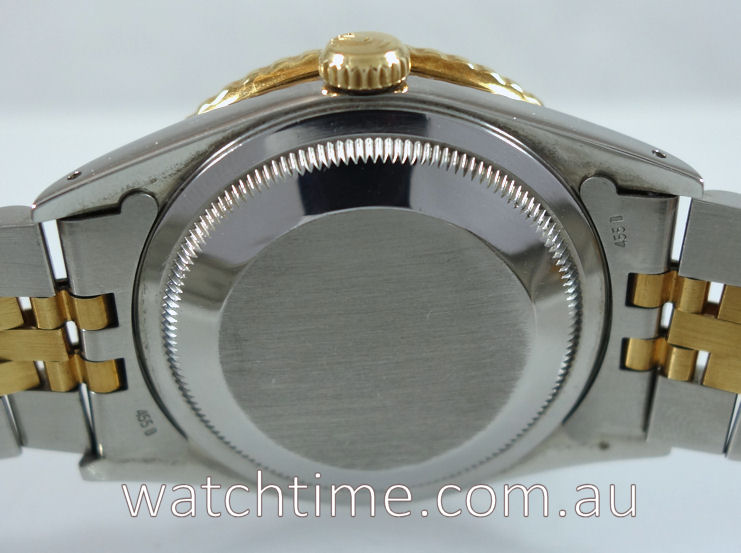 | Case | Stainless-steel Oyster case with screw-down crown and Sapphire crystal glass. 18ct Yellow-Gold rotating bezel. |