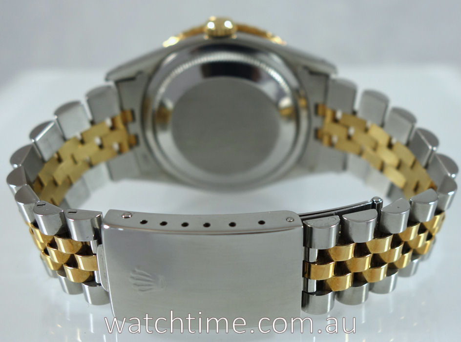 | Band | Stainless-steel and Yellow-Gold Jubilee bracelet and folding clasp by Rolex. |
