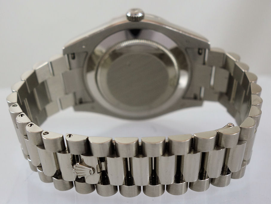 | Band | 18k White-Gold President bracelet and concealed folding clasp. Total amount of links, as per photos. |