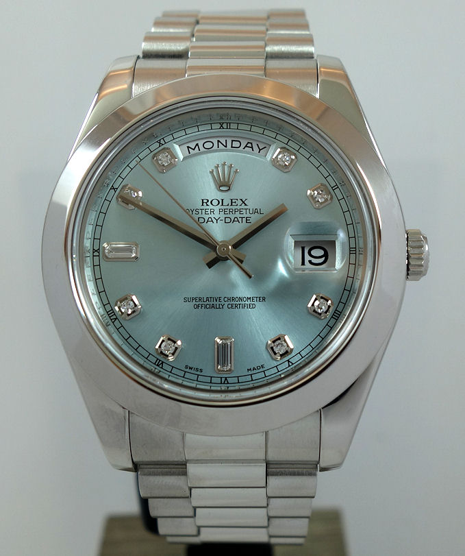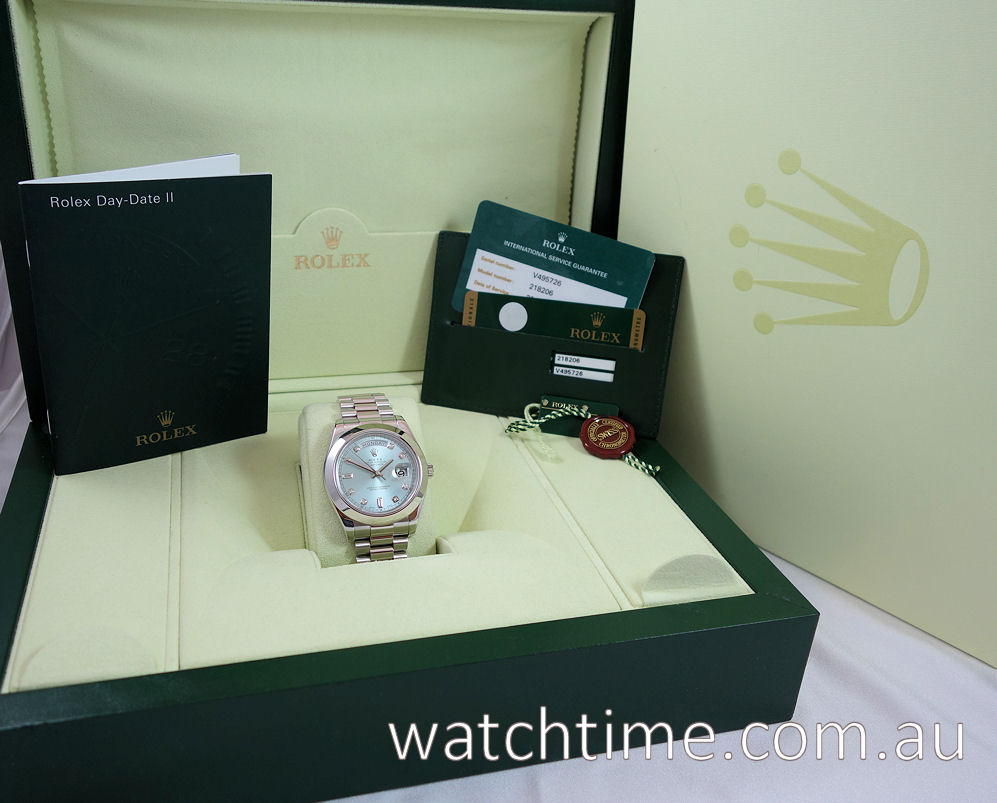 Rolex Day-Date II PLATINUM President Ice Blue Diamond Dial 218206 Box & Card