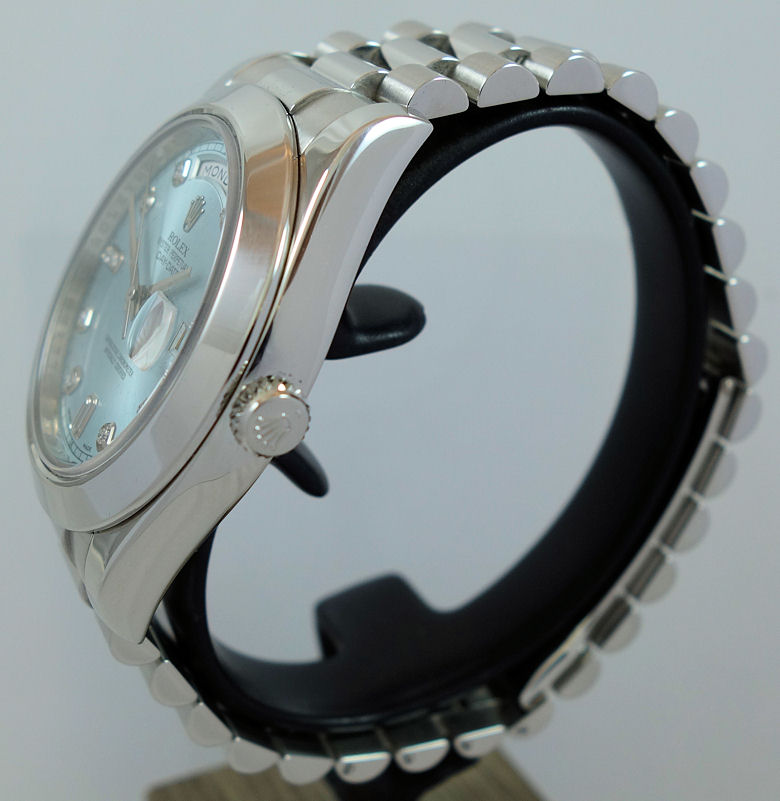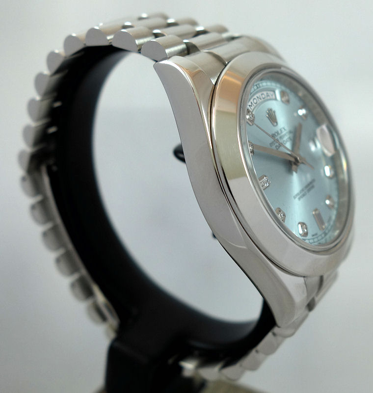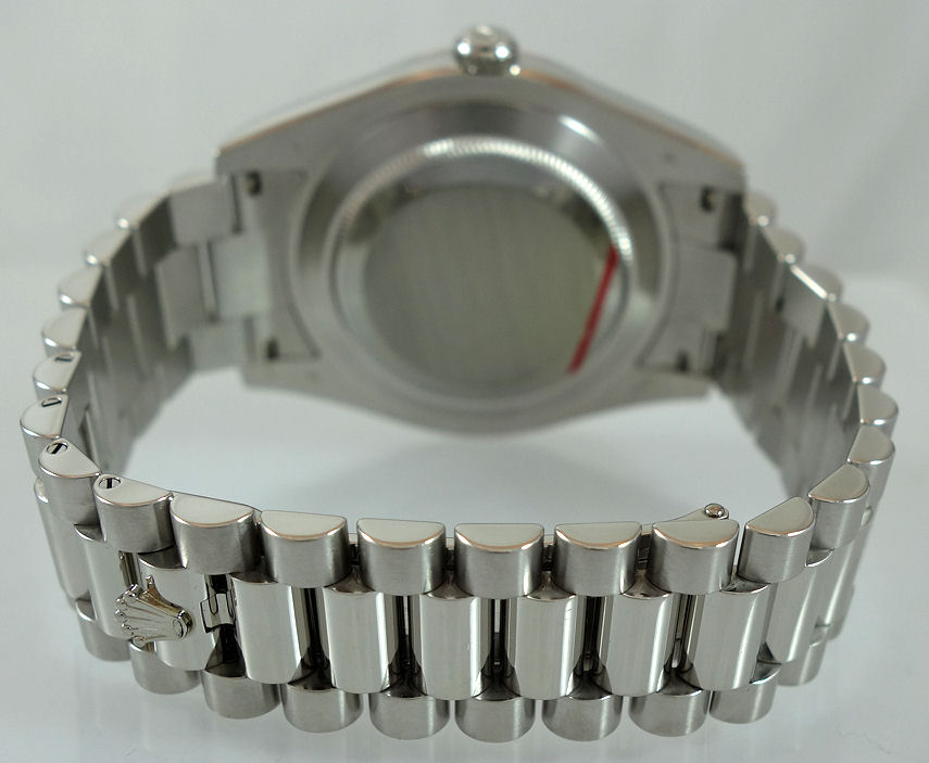 | Band | Platinum President bracelet and concealed folding clasp. Total amount of links as per photo. |