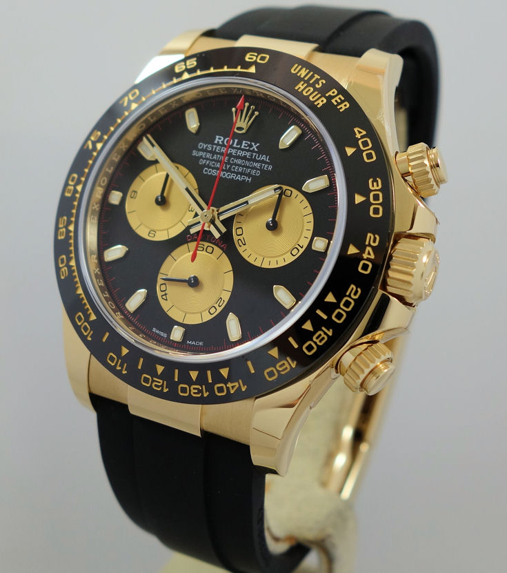 | Band | Yellow Gold Deployment Clasp, Black Rubber OysterFlex |
