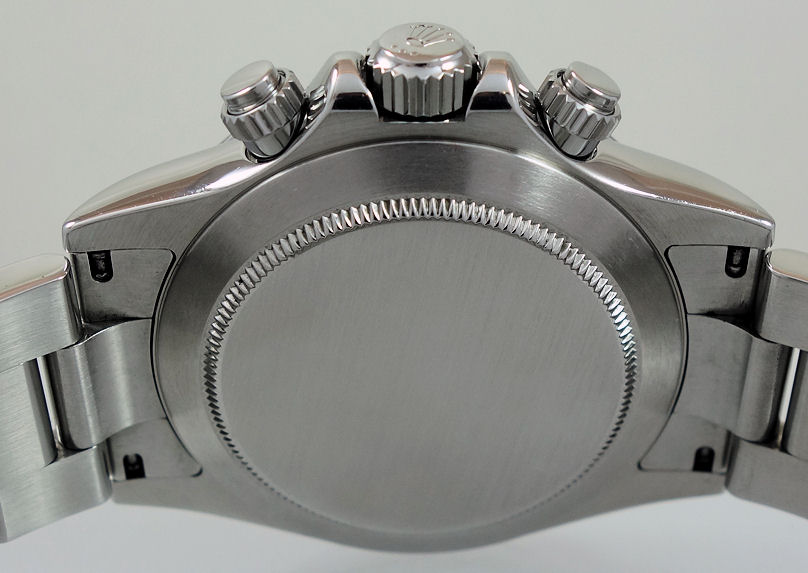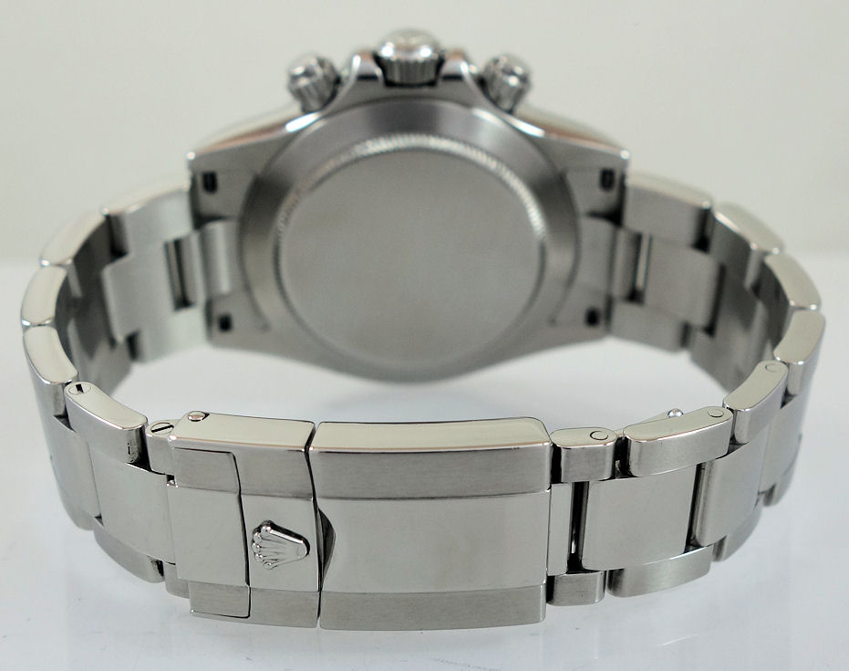 | Case | Stainless-steel Oyster case, fixed bezel with Tachymetre scale and screw-down pushers & crown. Sapphrie crystal glass. |