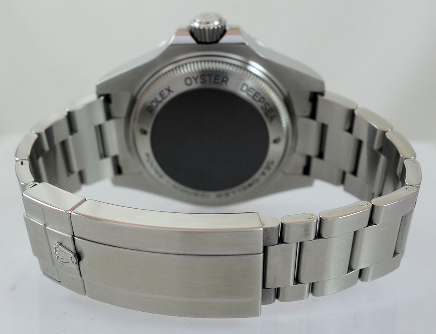 | Case | Stainless-steel Oyster case with screw-down crown, helium value and Sapphire crystal. Uni-directional rotating ceramic bezel. |