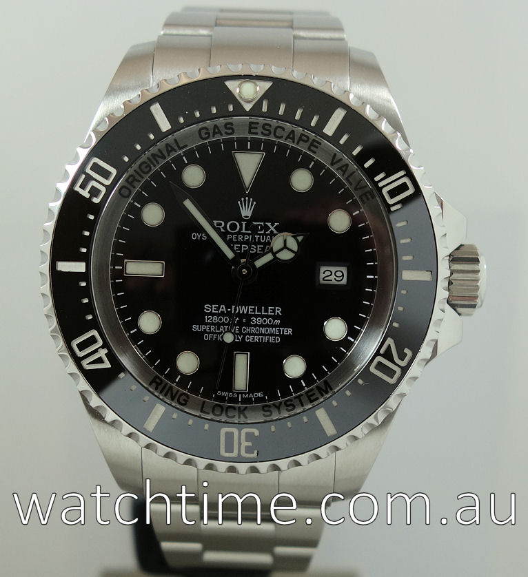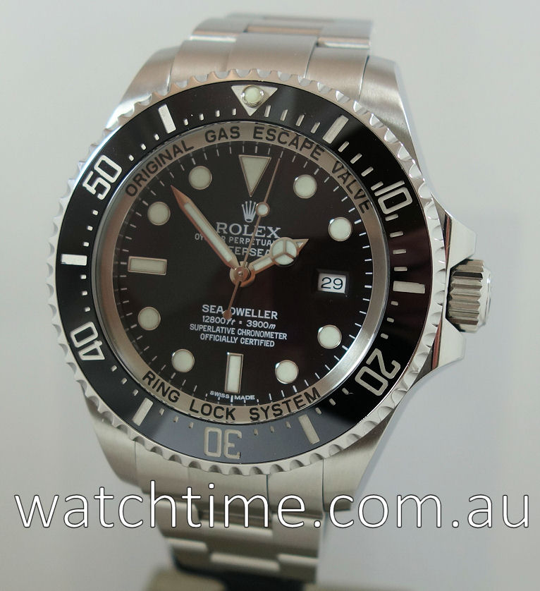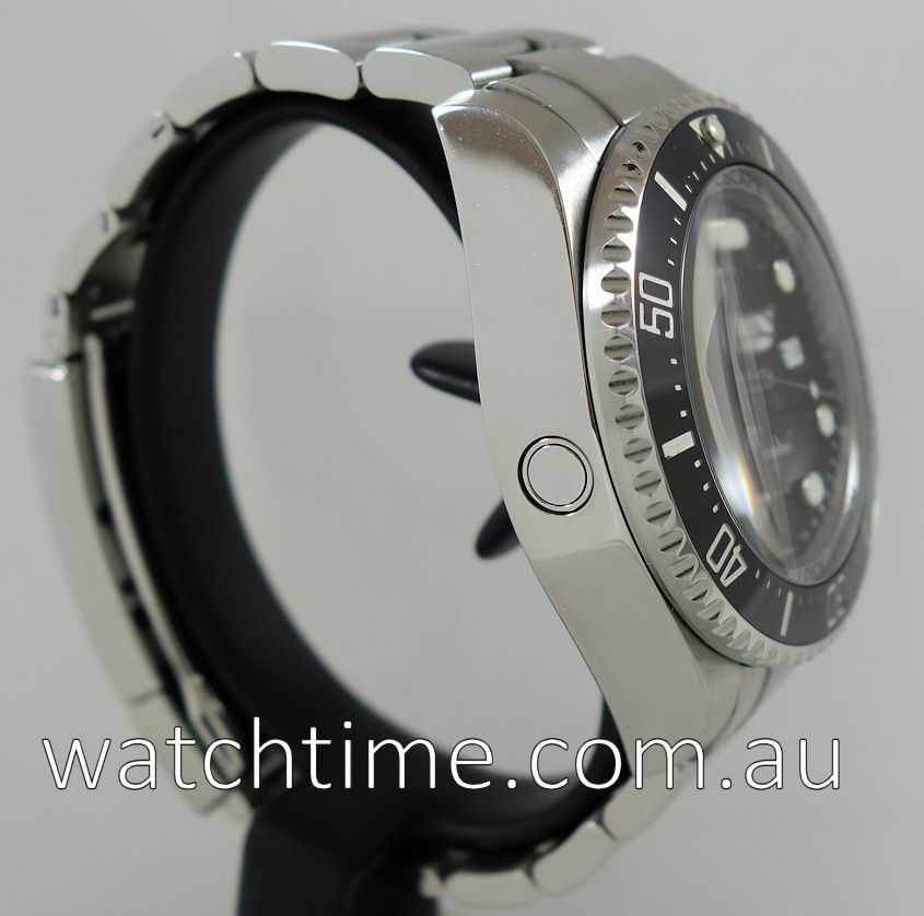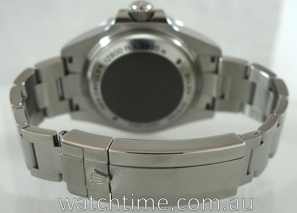 | Case | Stainless-steel Oyster case with screw-down crown, helium value and Sapphire crystal. Uni-directional rotating ceramic bezel. |