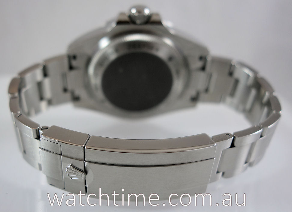 | Case | Stainless-steel Oyster case with screw-down crown, helium value and Sapphire crystal. Uni-directional rotating ceramic bezel. |