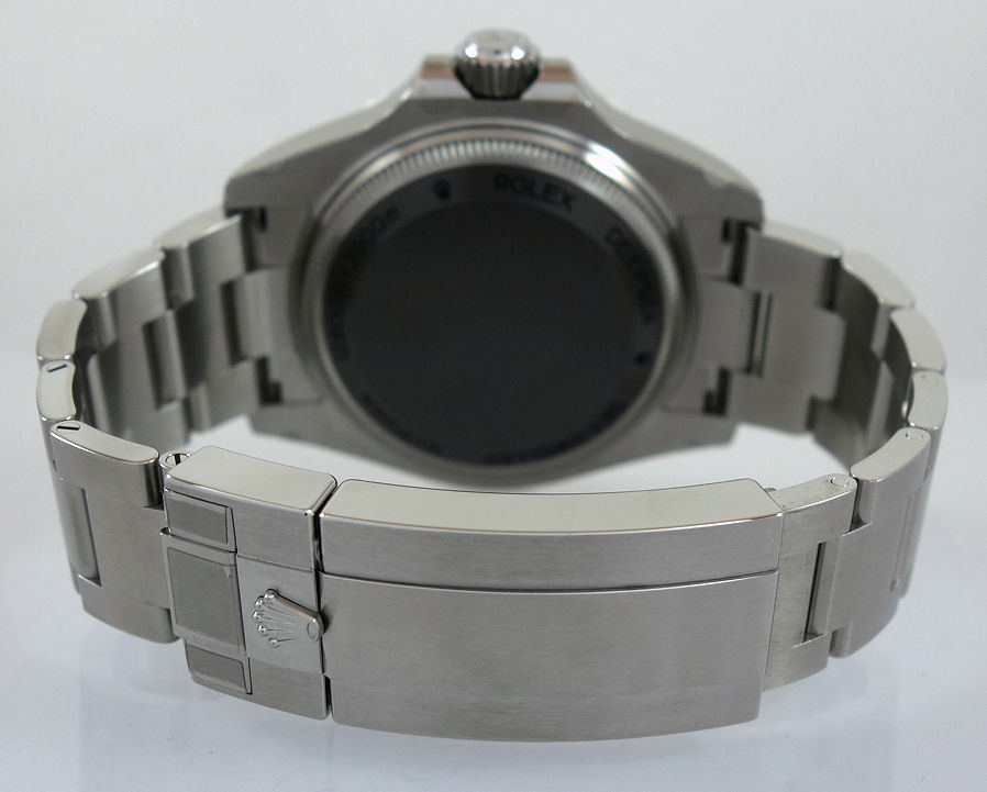 | Case | Stainless-steel Oyster case with screw-down crown, helium value and Sapphire crystal. Uni-directional rotating ceramic bezel. |