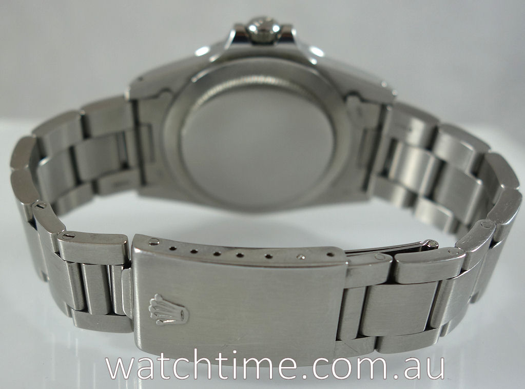 Stainless-steel Oyster case, fixed 24-hr Bezel, screw-down crown and plexiglas.