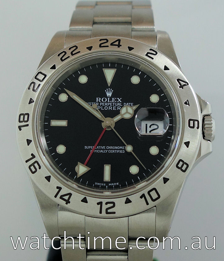 | Case | Stainless-steel Oyster case with screw-down crown and fixed bezel engraved with 24 hours. Sapphire crystal glass with cyclops over the date for magnification. |