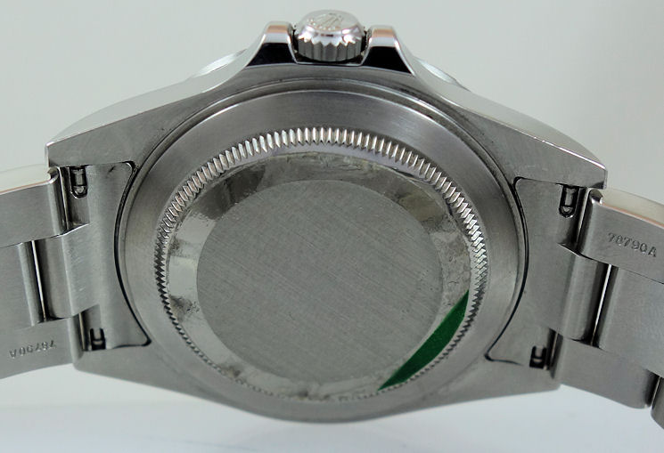 Stainless-steel Oyster case (SEL), screw-down crown and fixed bezel with engraved 24 hours. Sapphire crystal glass with cyclops lens over the date.