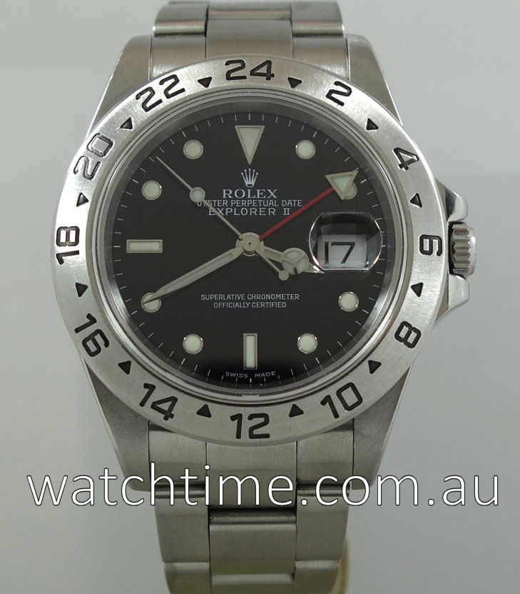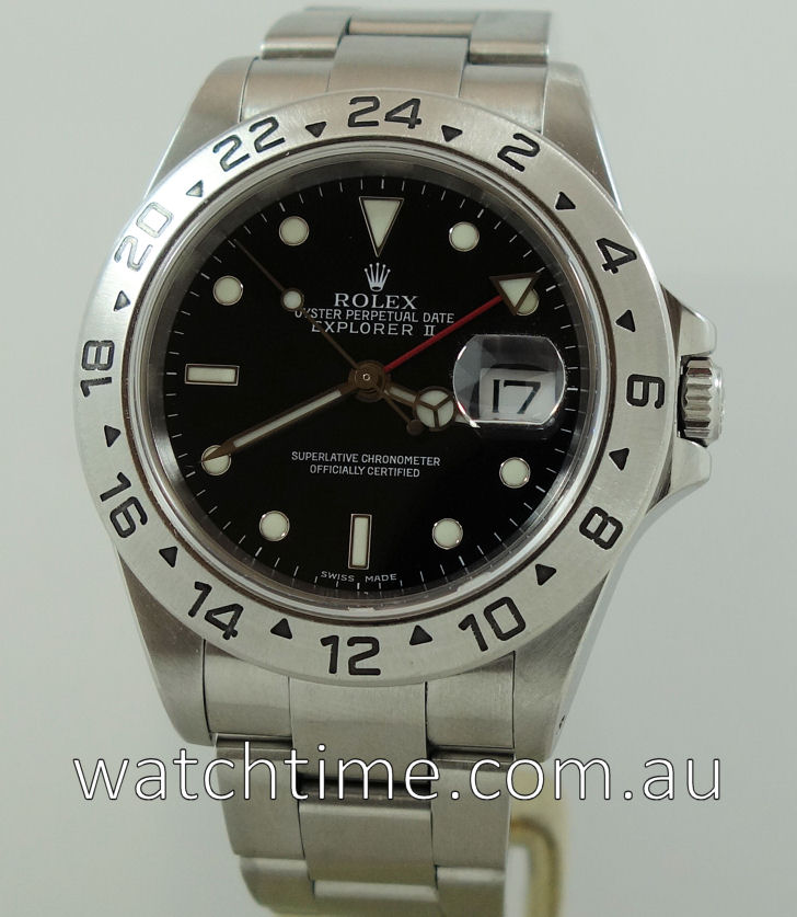 | Dial | Black with luminous hands and hour markers. Red arrow hand used with bezel for 2nd timezone. Date window at 3 h pos. |