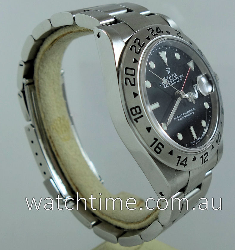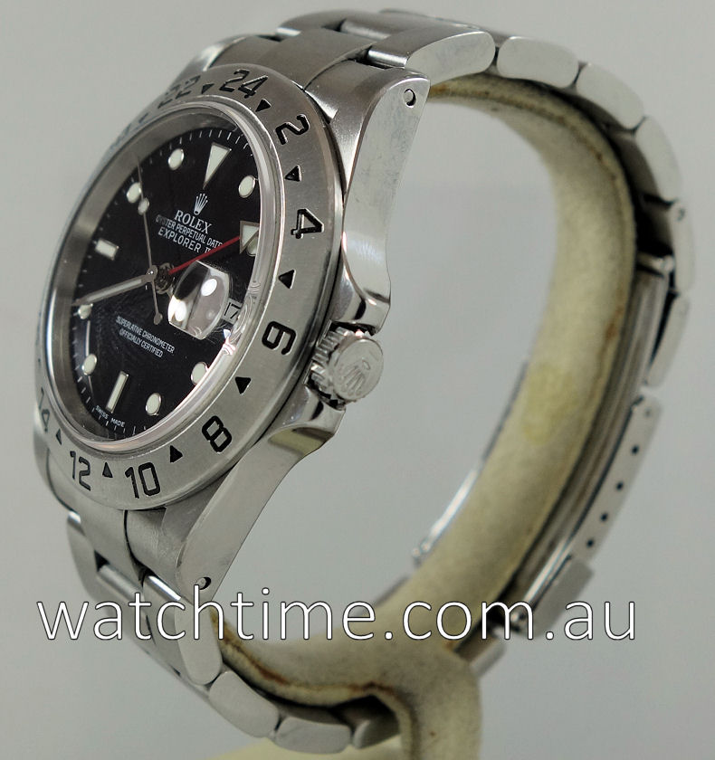 | Case | Stainless-steel Oyster case with screw-down crown and fixed bezel engraved with 24 hours. Sapphire crystal glass with cyclops over the date for magnification. |