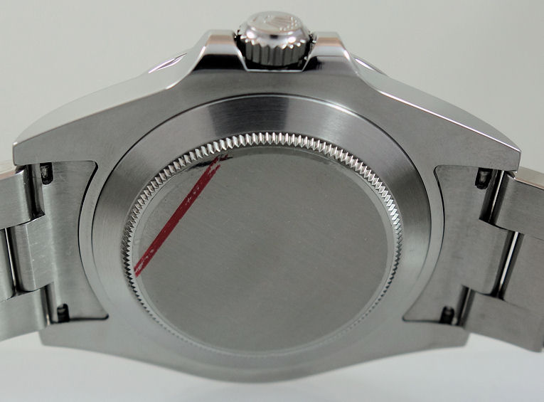 | Case | Stainless-steel Oyster case with screw-down triplock winding crown. Fixed, 24-hour graduated bezel. Scratch resistant Sapphire crystal glass with cyclops over the date for magnification. |