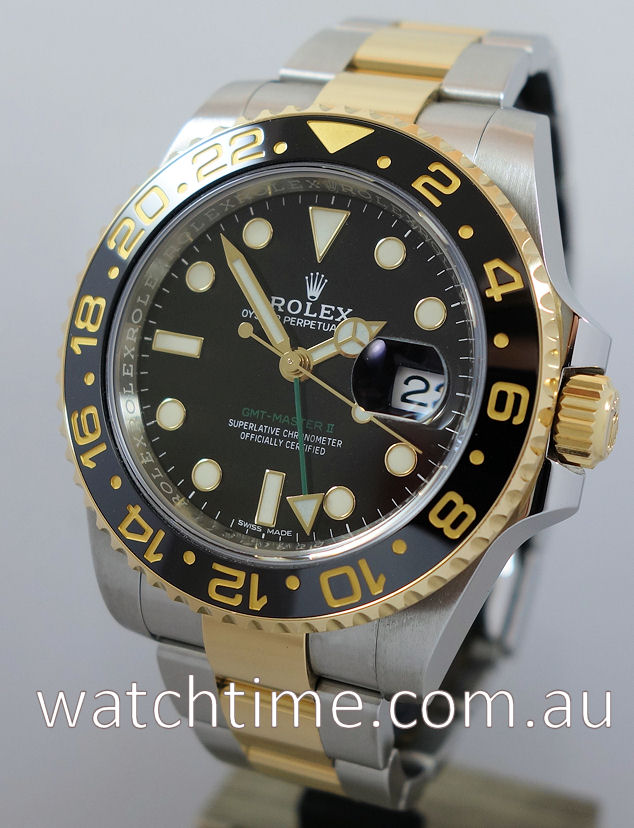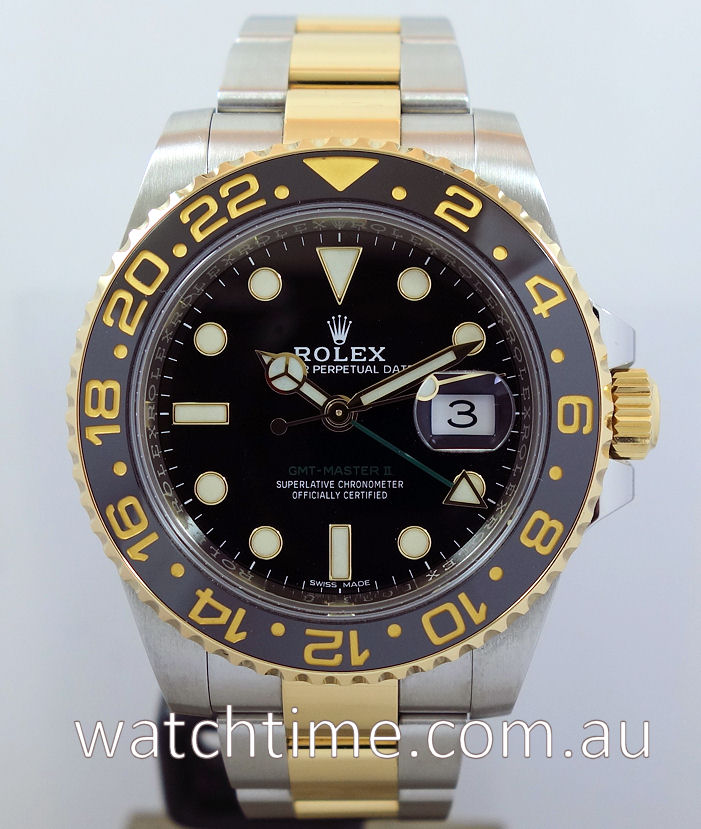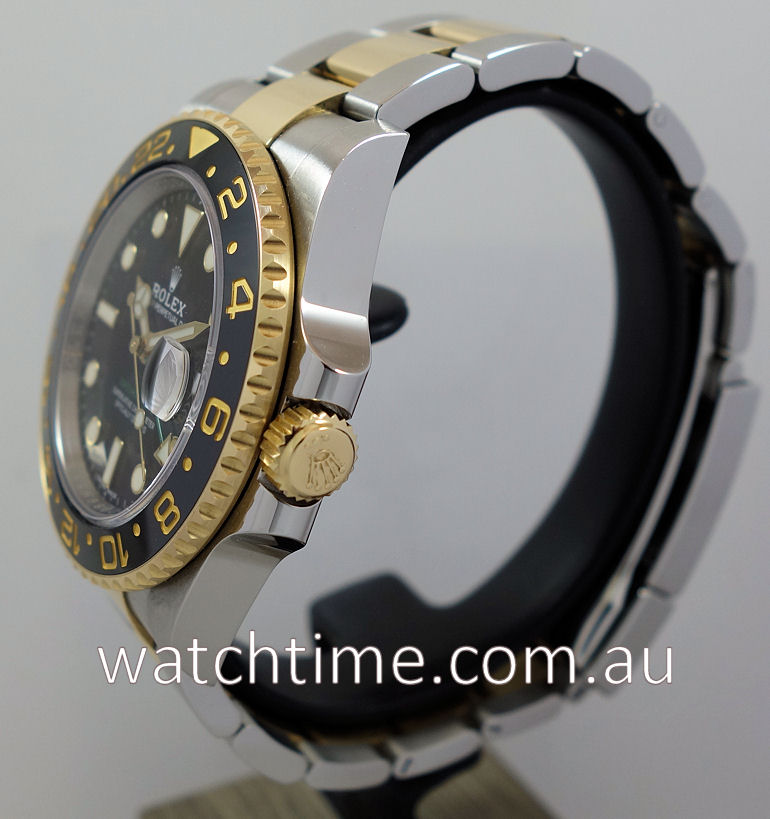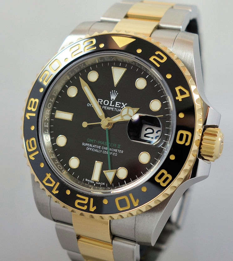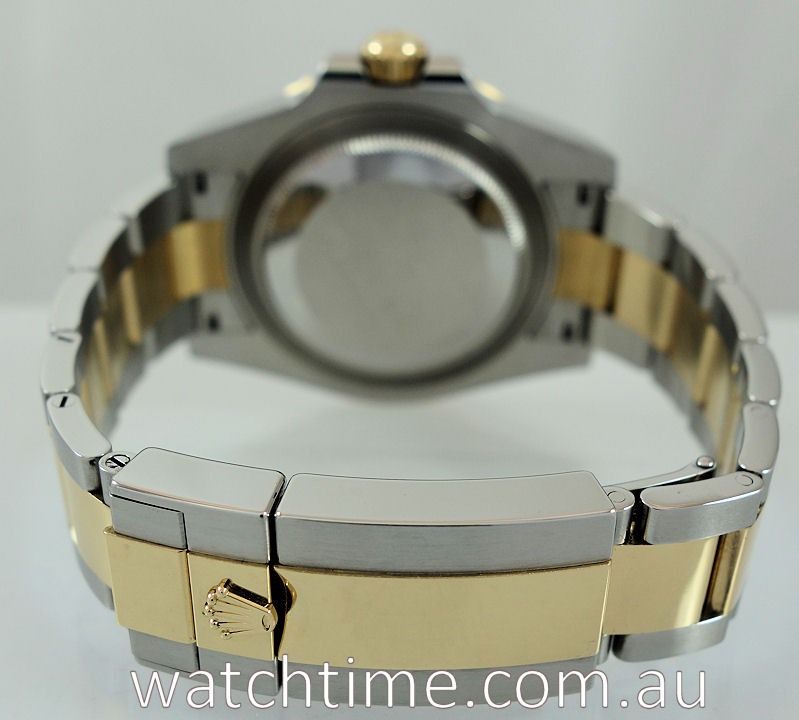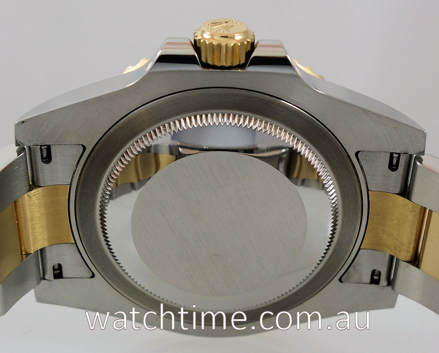 | Case | Stainless-steel Oyster case with 18k Yellow-Gold & black ceramic bezel. Screw-down crown and Sapphire crystal glass. |