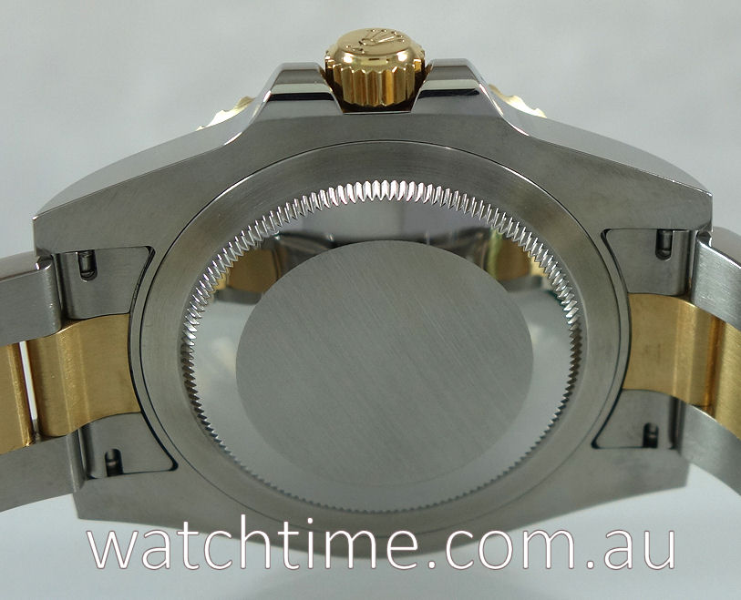 | Case | Stainless-steel Oyster case with 18k Yellow-Gold & black Ceramic uni-directional rotating diver bezel, screw-down crown and Sapphire crystal glass. |